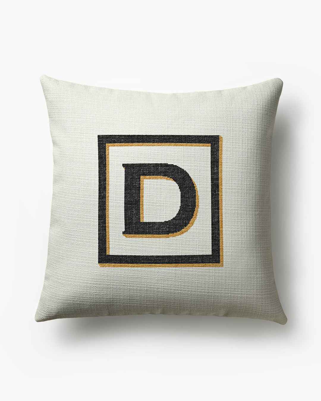 Timeless and refined, this pillow features dimensional monogram letters that evoke a handwoven texture. The elegant blend of ivory, black, and gold creates an elegant look thats both classic and modern. Water-resistant, stain-resistant, and machine-washable. Colors may vary slightly according to you...more