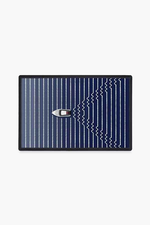 Celebrate your love for all things nautical with our Seas the Day Doormat. This machine-washable, seafaring-inspired doormat illustrates a ship in the middle of the sea. Different hues of slate and midnight blue create an ombre effect, while white stripes create a fun take on waves. Seas The Day Doo...more