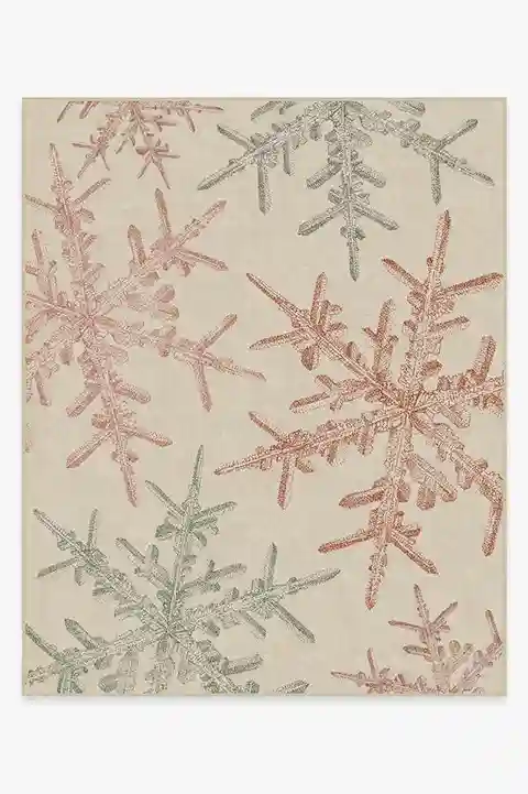 An elevated holiday design. Our classic Snowflake Creme Rug displays delicate snowflakes colored in sage green and farmhouse red that float lightly against a creamy sky, resulting in a stunning accent piece to elevate the richness of your seasonal decor. Water-resistant, stain-resistant, and machine...more