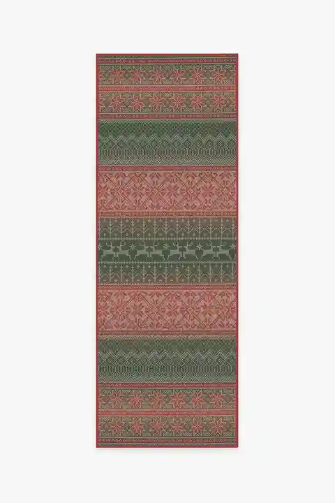 Inspired by the traditional, hand-knitted designs of its namesake, our Fair Isle Multicolor Rug features a multi-band of intricate and festive designs, including poinsettias, holiday trees, and reindeer, in hues of farmhouse red, leaf and hunter green. Water-resistant, stain-resistant, and machine-w...more