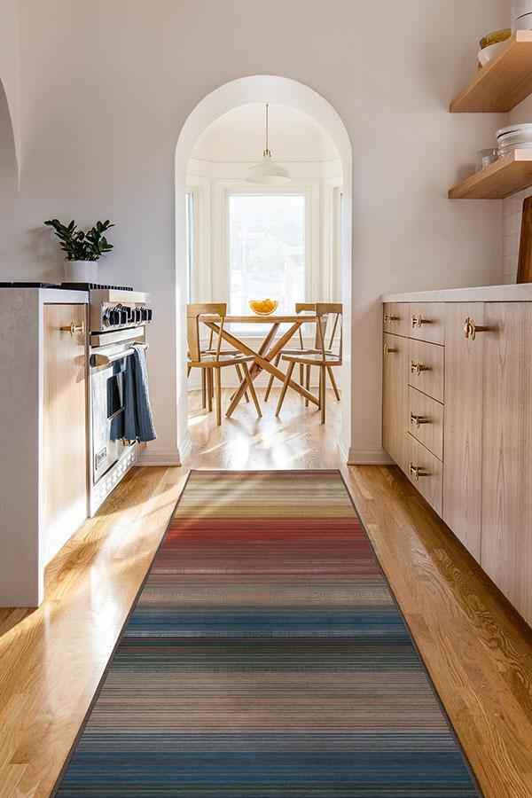 Make an eye-catching statement with our Linear Striped Multicolor rug. The myriad of striated colors is gently distressed to create this distinctive, stunning design. Easily complement your existing modern or contemporary home furnishing with this dashing floor decor piece. Washable Rug Cover & Pad ...more