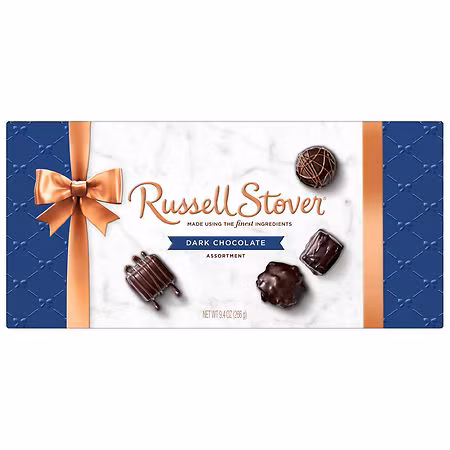 The RUSSELL STOVER Assorted Dark Chocolate Gift Box, 9.4 oz. This 16 piece assortment features 9 decadent dark chocolate flavors: dark chocolate caramel, dark chocolate pecan delight, dark chocolate nut caramel, dark chocolate truffle, dark chocolate orange creme, dark chocolate vanilla creme, dark ...more