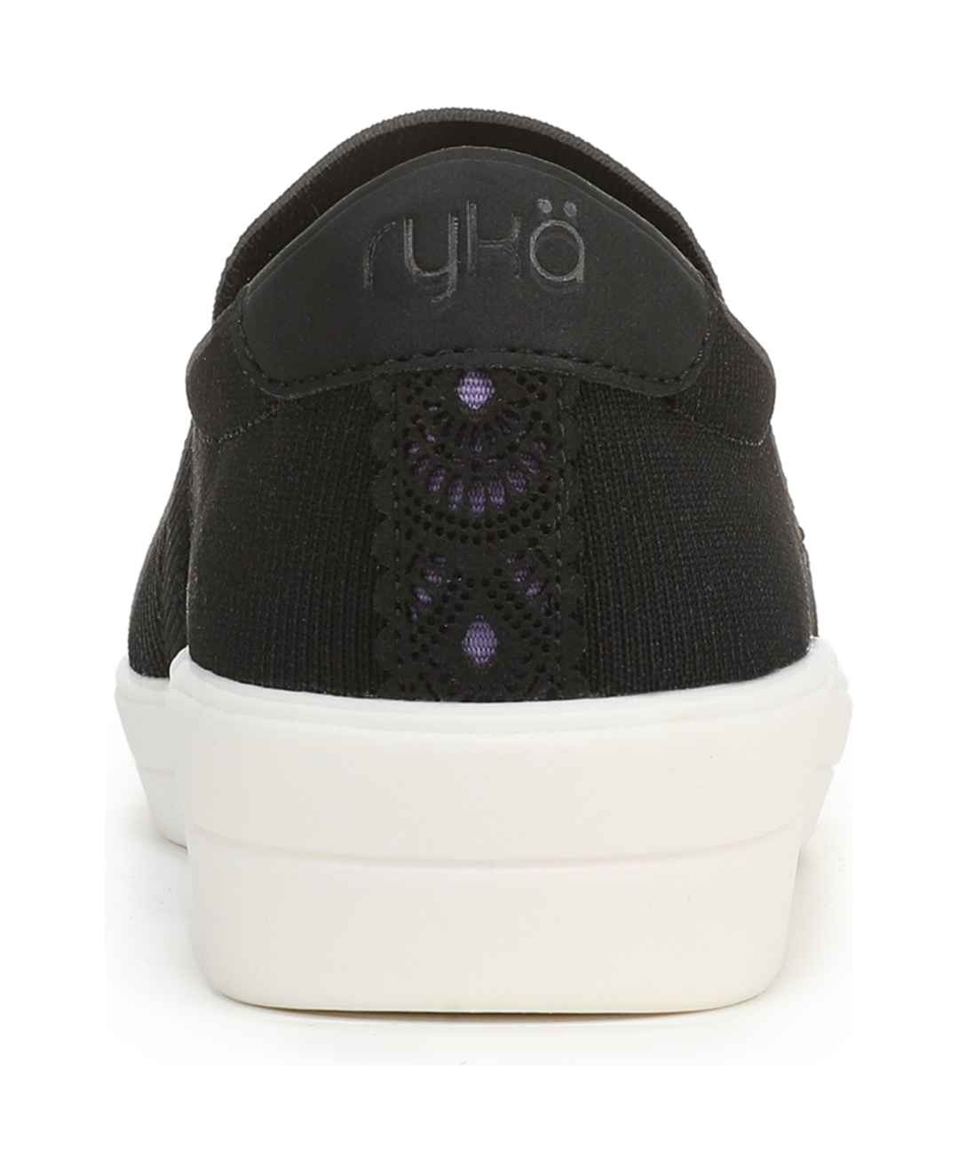 Crafted for lifestyle comfort, this women's slip-on sneaker features lab-tested cushioning, Ryka's Q Angle support for muscle alignment, and a soft ribbed knit upper with anatomical insole and durable rubber cupsole for all-day stability and ease.