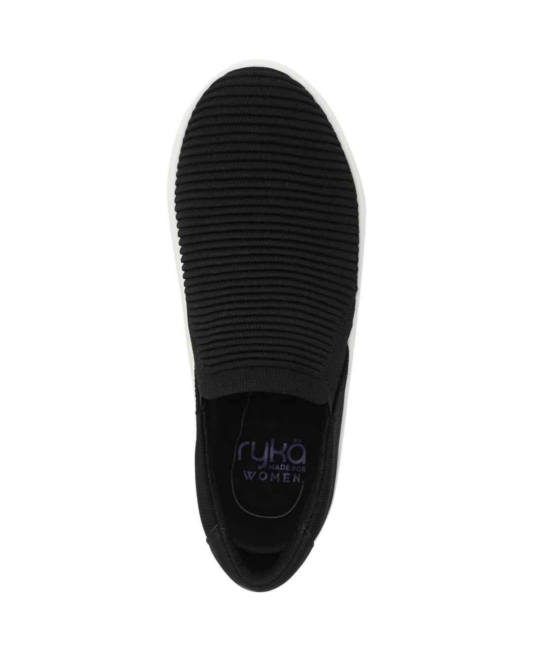 Ryka Women's Viv Ease Knit Court Inspired Slip On Sneakers - Black Knit Fabric