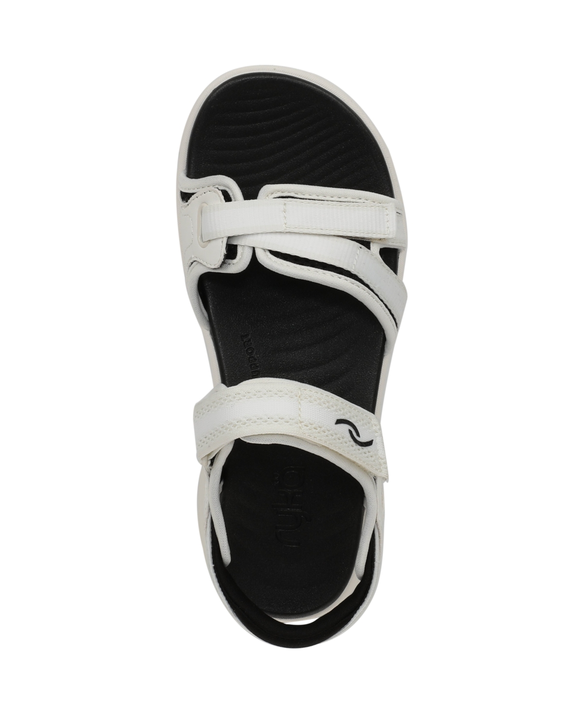 Ryka Women's Devotion Max Strappy Flat Sandals - White/Black Mesh Fabric