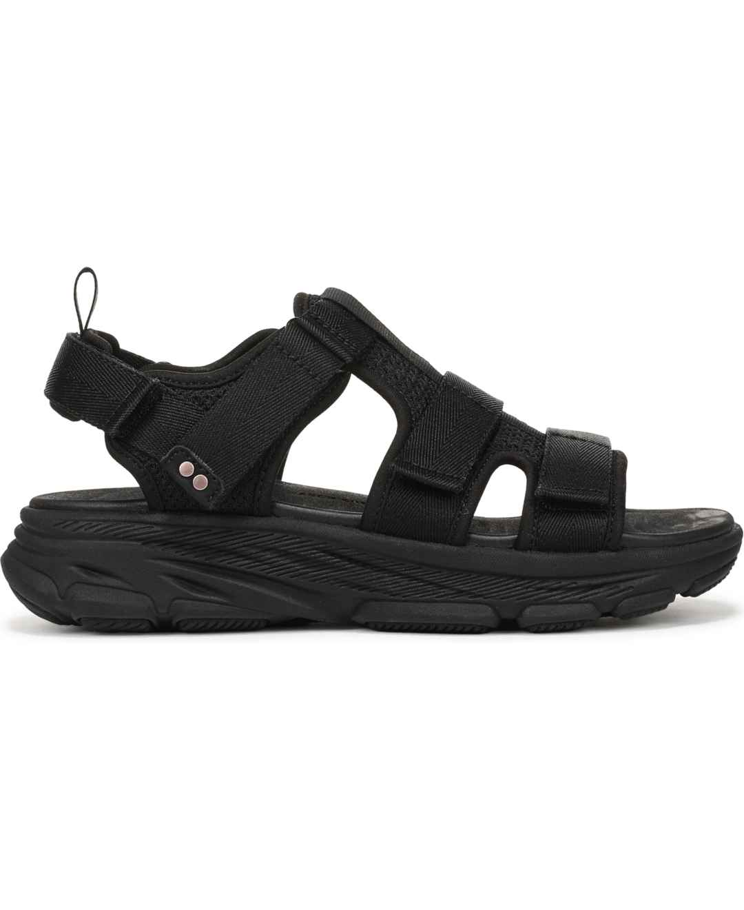 Ryka Women's Devotion Max T Strap Flat Sandals - Black Mesh Fabric