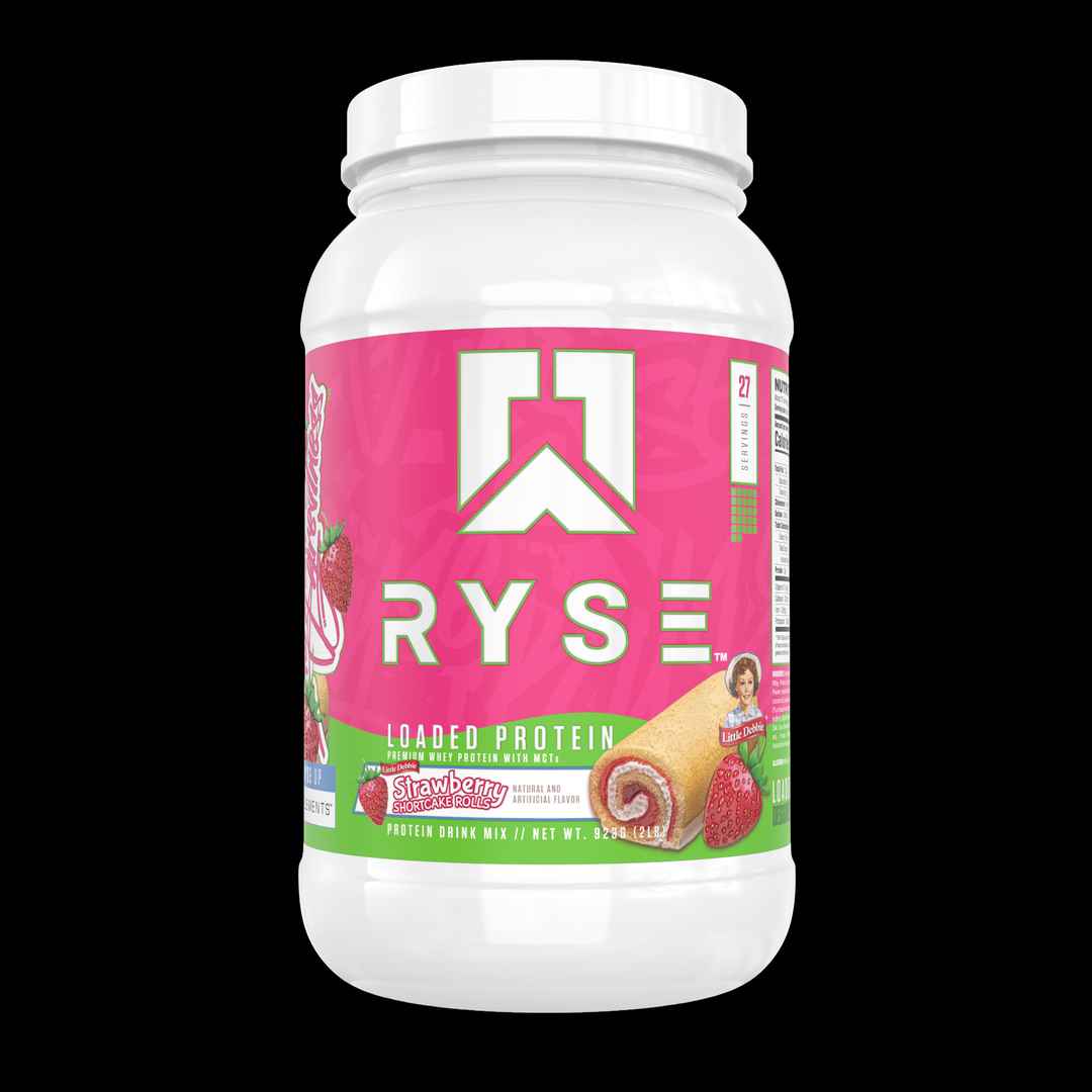 Ryse Up - Loaded Protein: Protein Drink Mix - Little Debbie Strawberry Shortcake Rolls - 27 Servings Ryse Loaded Protein In Cosmic Brownie Flavor Contains Premium Whey Protein (With Whey Isolate Being The Primary Protein Source) With Mcts. Benefits: This Whey Protein Powder Provides 25G Premium Whey...more
