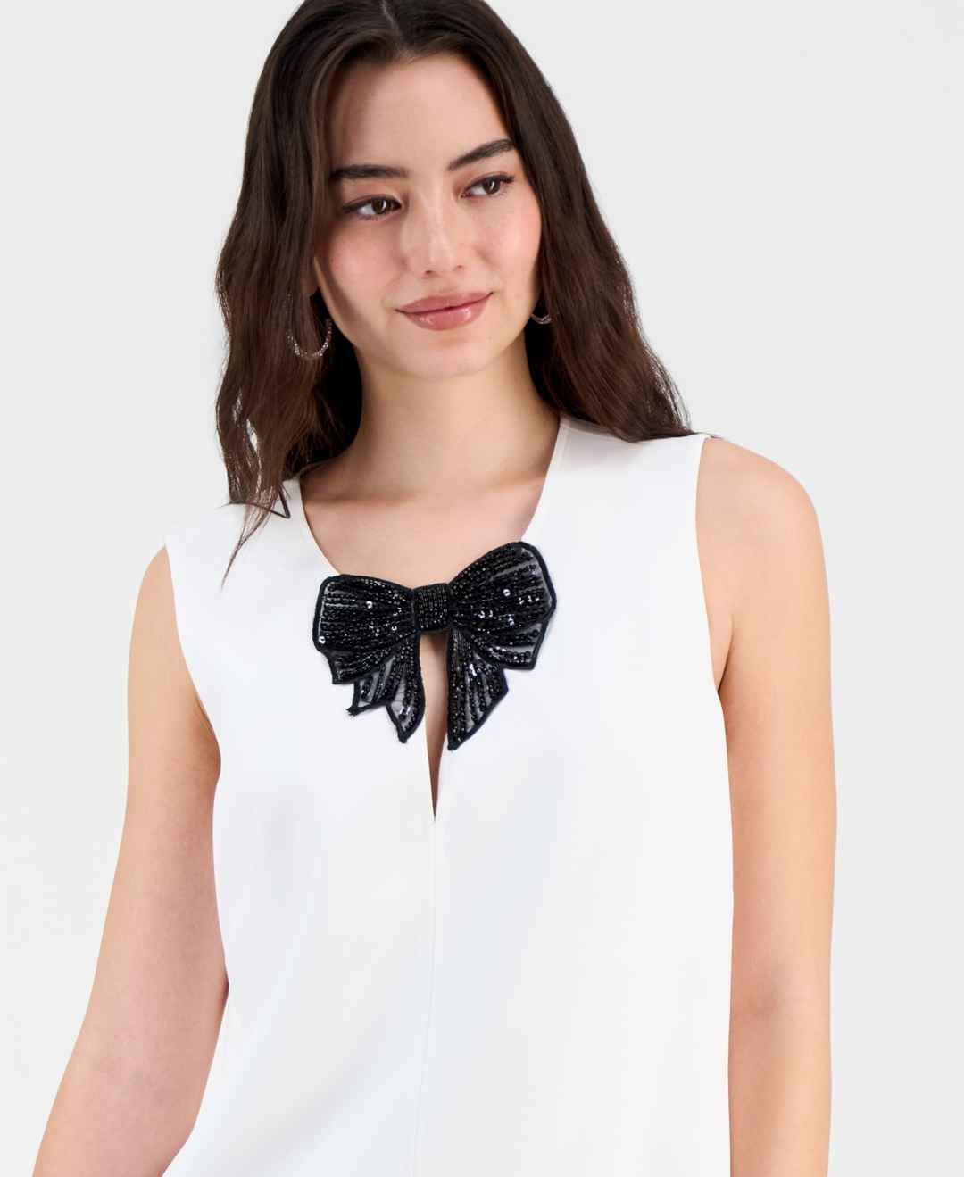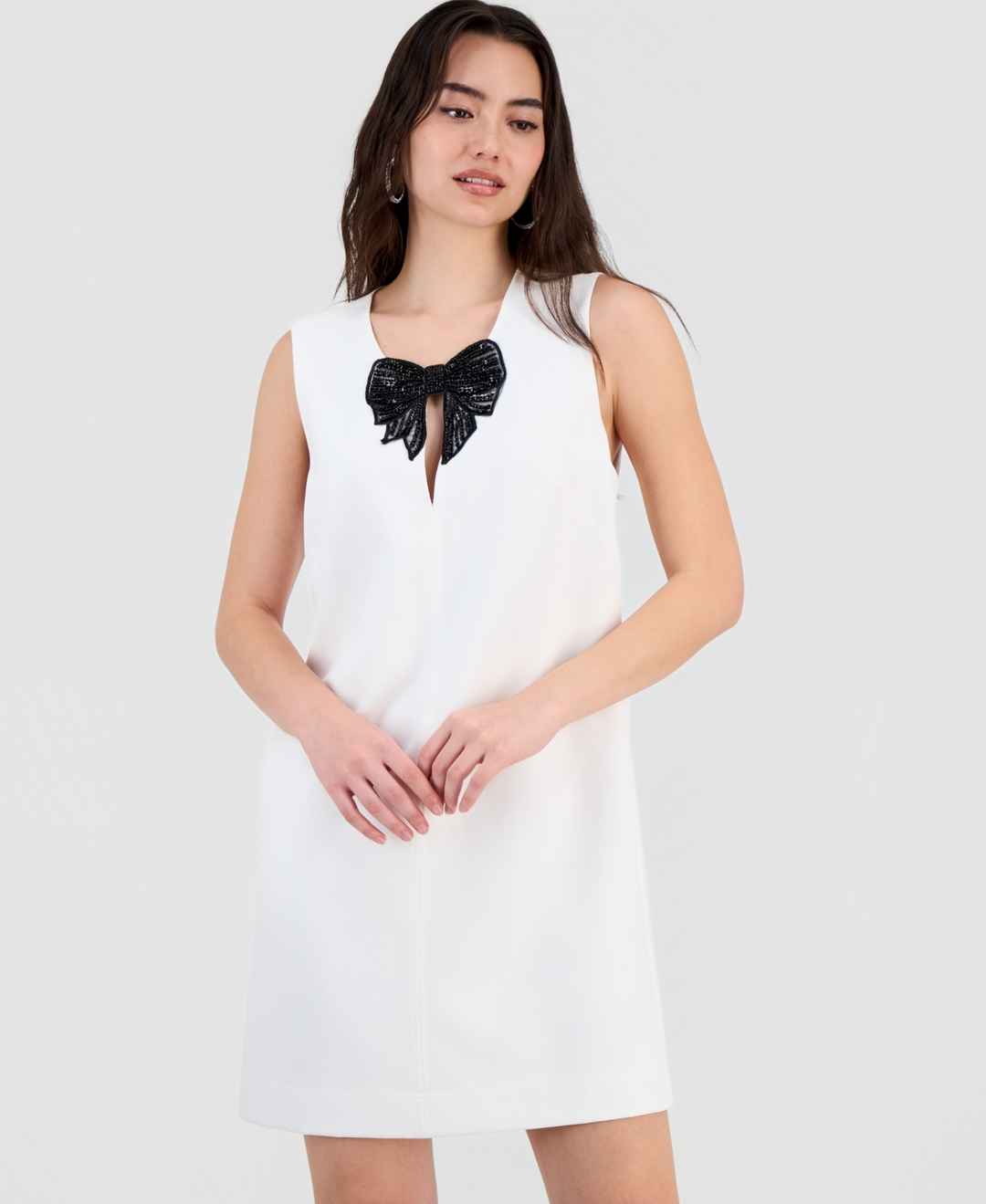 Sam Edelman enhances the chic charm of this timeless shift dress with a contrasting bow adorning its neckline for a finishing flourish.