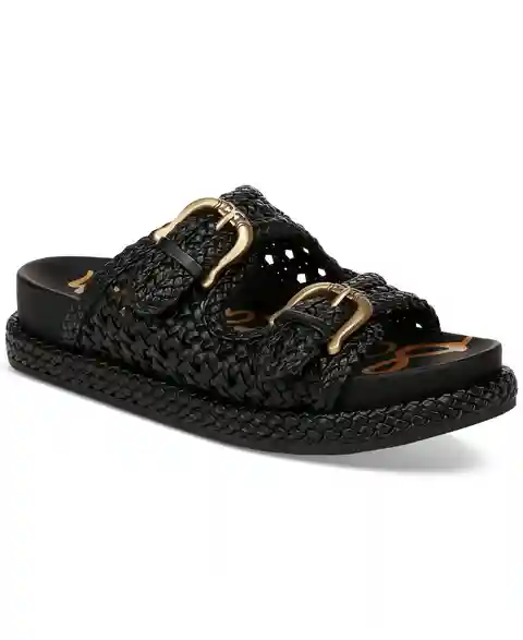 Sam Edelman Reid Woven Double Buckle Platform Sandals - Black