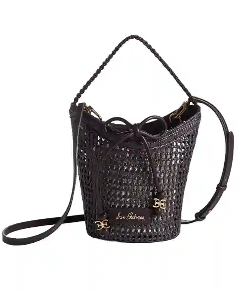 Elevate everyday accessorizing with this Sam Edelman small crossbody bag featuring intricate woven craftsmanship for distinctive character. Braided handle detailing and an Se logo patch add signature appeal, while a canvas pouch insert keeps essentials neatly arranged. A removable adjustable strap w...more