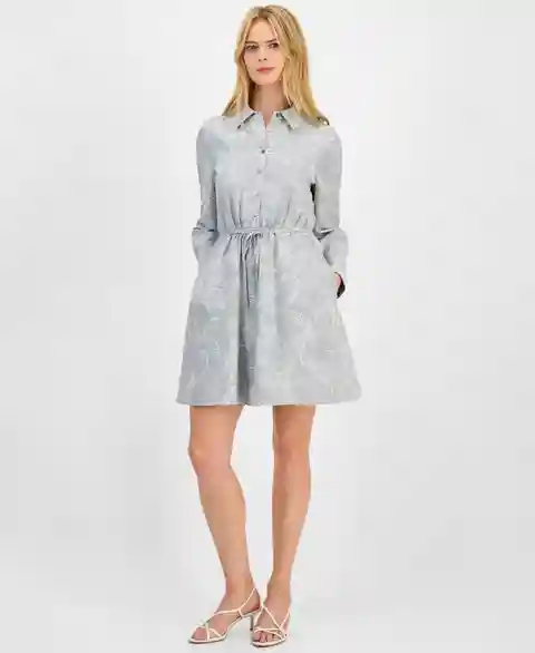 Sleek stripes meet a blooming floral print on Sam Edelman's fit-and-flare shirtdress. The self-tie belt adds definition to the look, while hidden side pockets keep essentials close at hand.