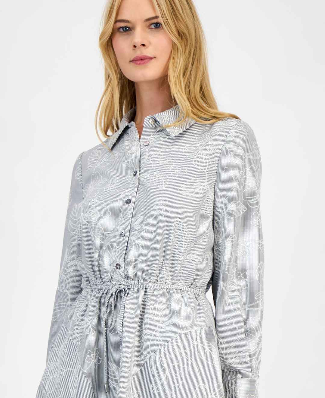 Sam Edelman Women's Floral Stripe Shirtdress - Grey/ White