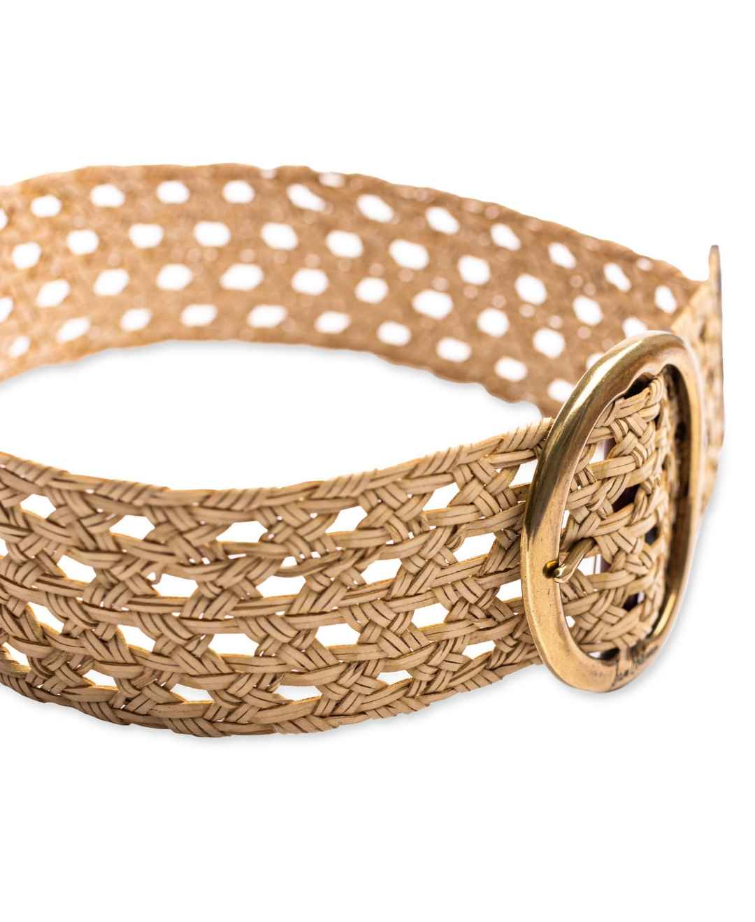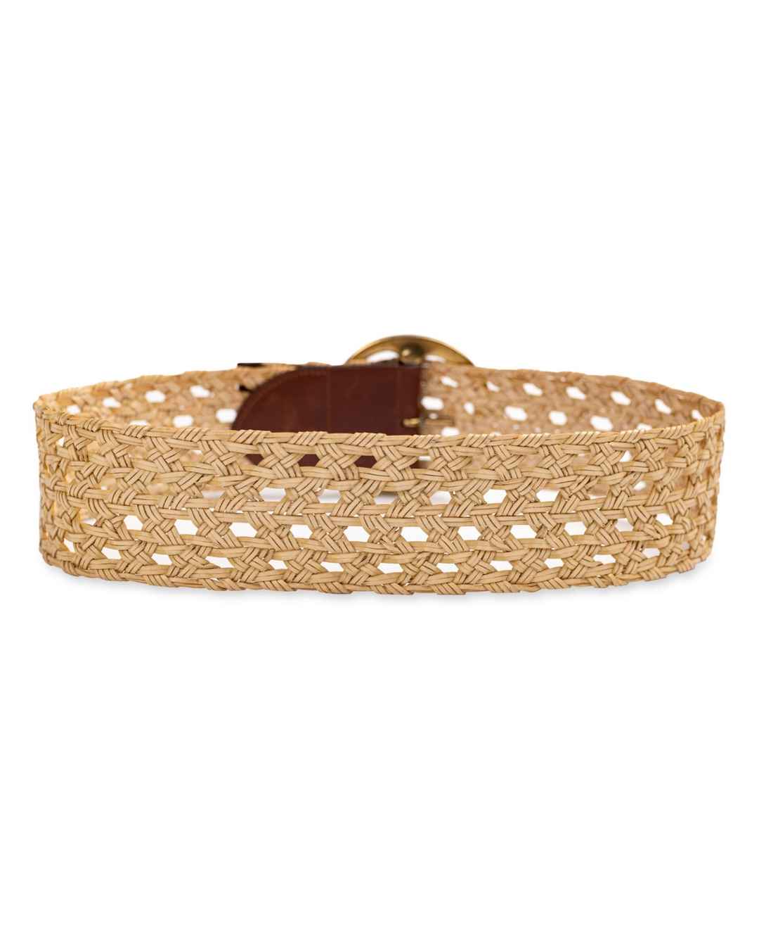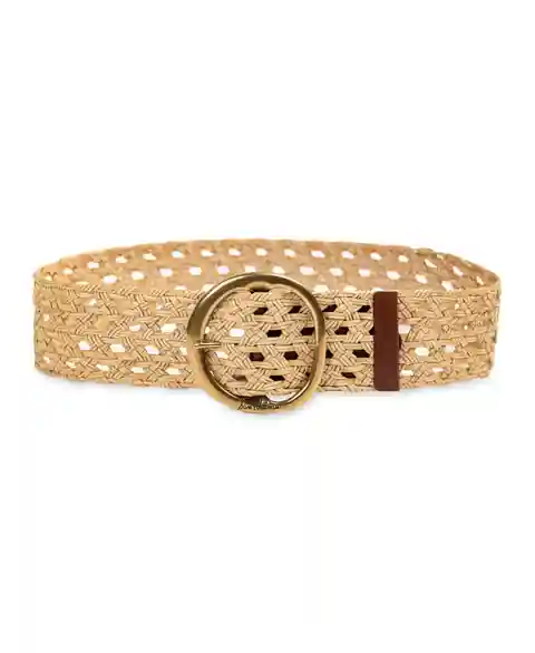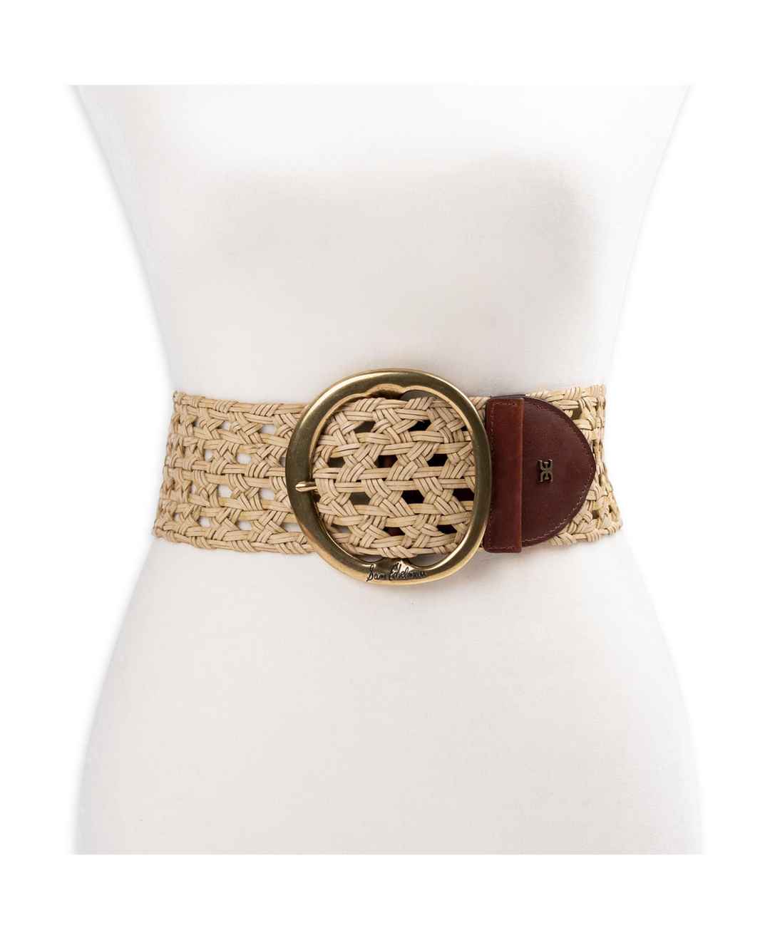 Sam Edelman Women's Woven Leather Belt with Circular Center Bar Buckle - Natural