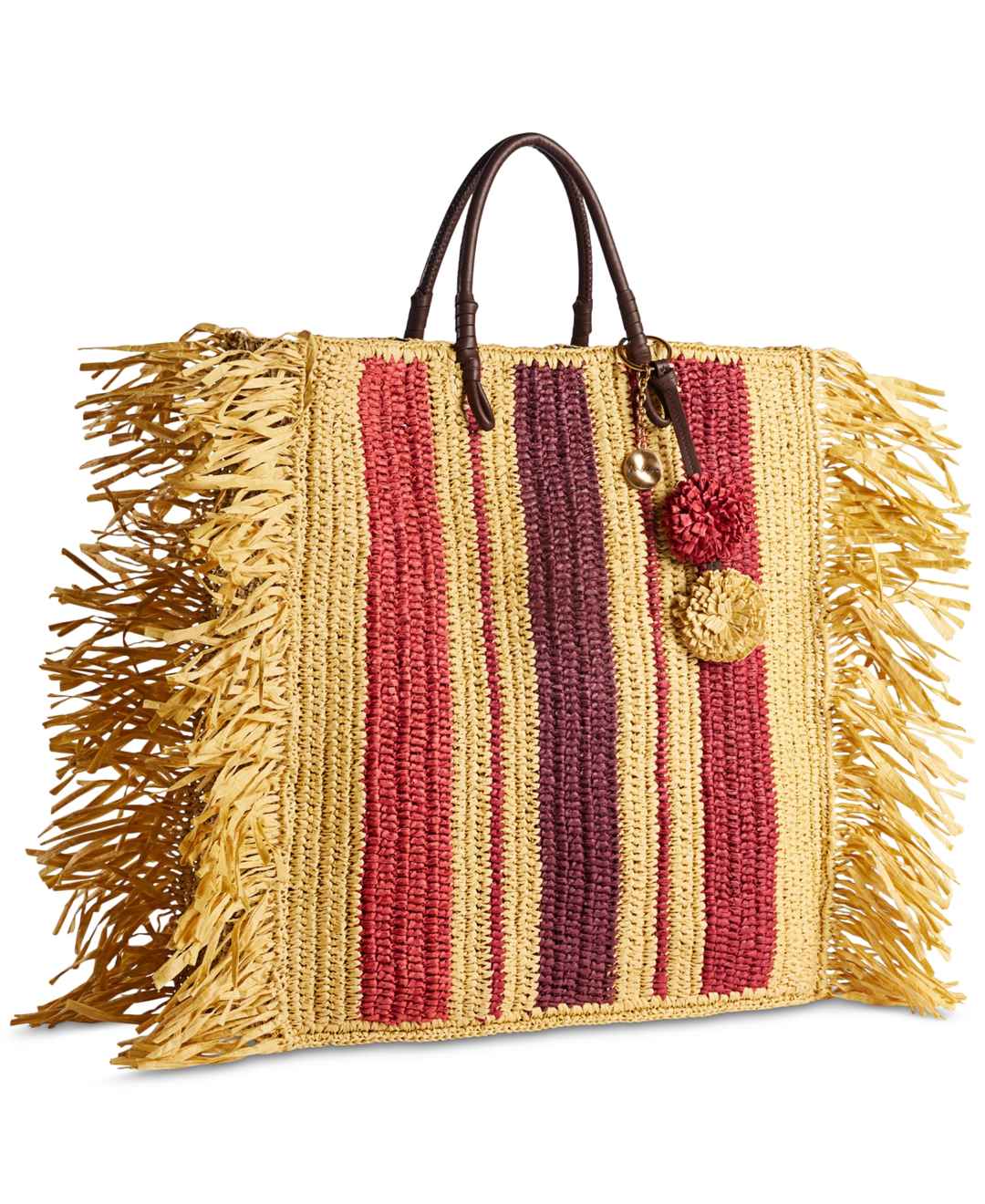 Own artisan sophistication with this Sam Edelman large tote bag crafted in intricate handwoven construction with dramatic fringe detailing. An Se flower charm and signature patch enhance its character, while an interior phone pocket and generous capacity keep essentials organized for busy days.