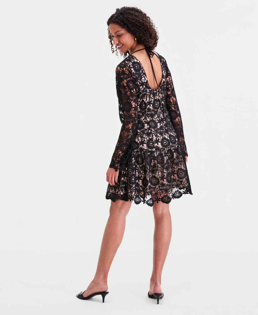 Sam Edelman Women's Lace Scoop-Back Flounce-Hem Dress - Black