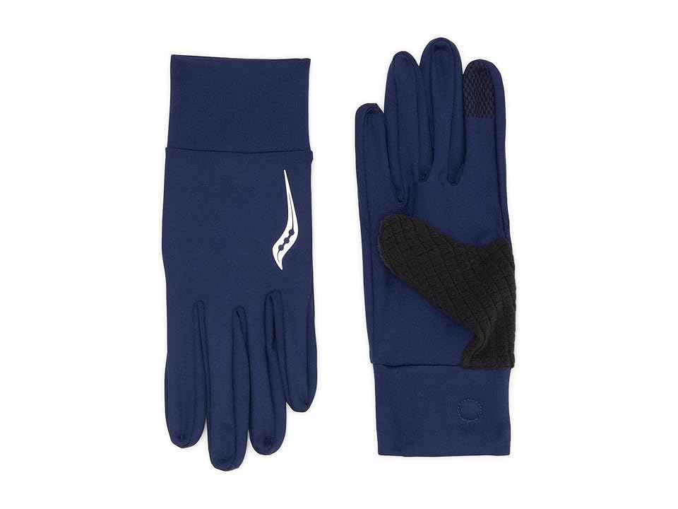 The primary materials that compose this product contain a minimum of 20 percent recycled content. The Saucony Solstice Gloves are created to keep you comfortable during icy rides. Standard fit. Fleece fabrication inside for added comfort and warmth. You can answer calls and read texts using conducti...more
