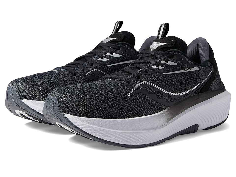 Go the extra mile on your next run in the Saucony Echelon 9 sneakers. Traditional lace-up closure offers a secure fit. Classic round toe silhouette. PWRRUN midsole is lightweight and responsive for soft cushioning throughout your run. Padded tongue and collar for added support. Pull tabs in front an...more