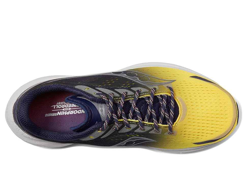 Enjoy unlimited speed while going for routine work, wearing Saucony Endorphin Speed 3 footwear. Round toe silhouette. Lace-up closure offers a secure fit. SPEEDROLL technology creates a lively rolling underfoot feel, with an always-forward geometry. Ultra-light and responsive PWRRUNPB foam cushionin...more
