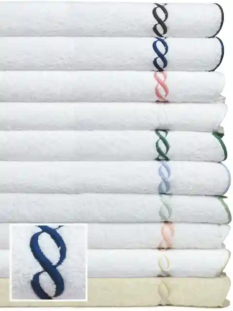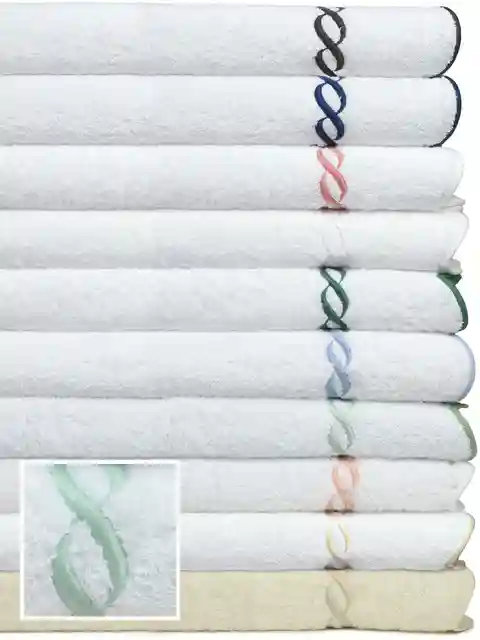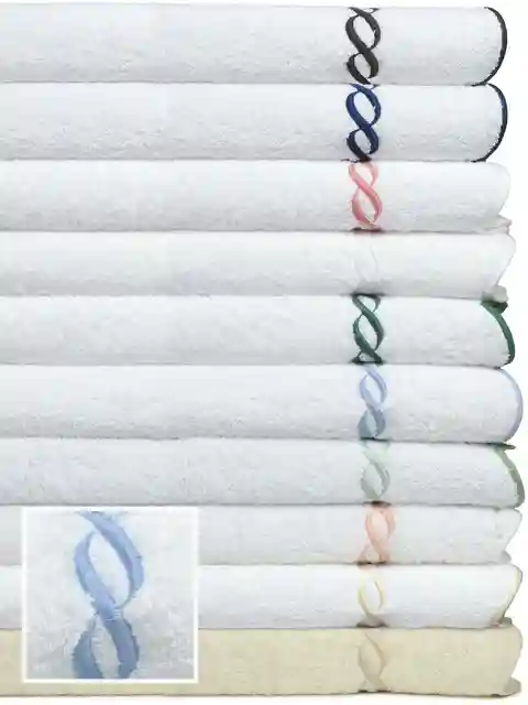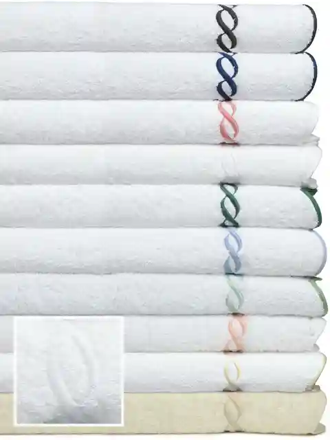 <p>Sienne Bath Towels,Beige (Guest) White, oversized, extremely absorbent terry towels are woven, embroidered and piped in Italy with a chain motif. Available in Black, Navy, Pink, Red, White, Hunter Green, Blue, Green, Peach, Yellow or Beige on White and Ivory on Ivory of 100% cotton, delight...more