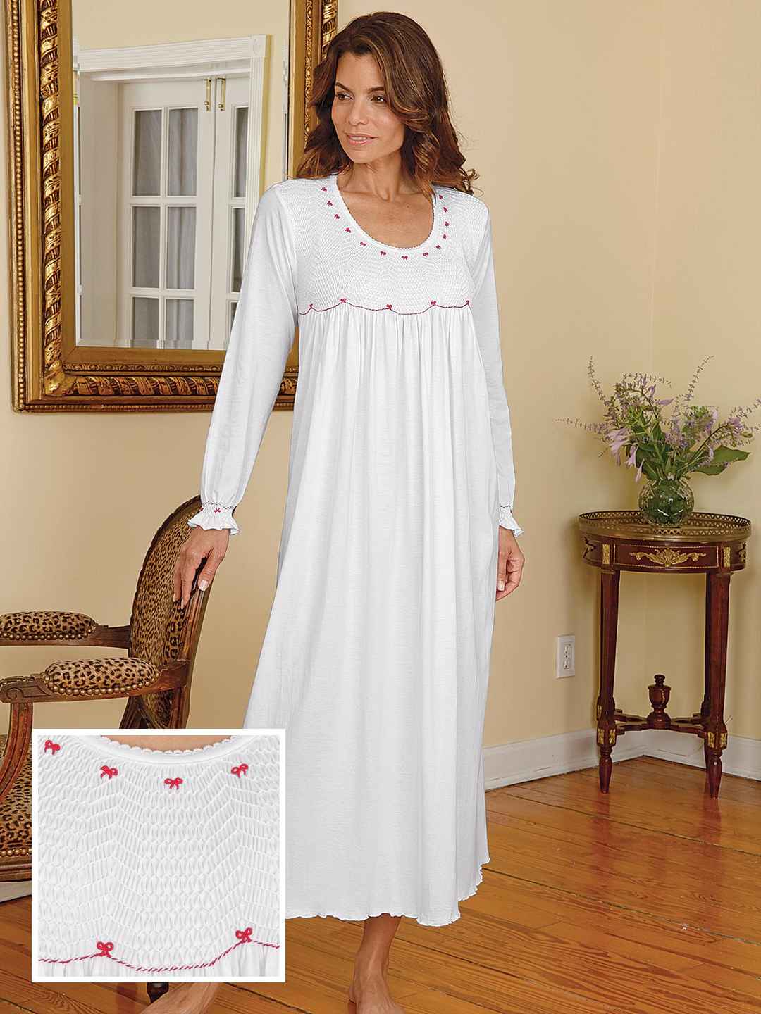 <p>Scarlet Gown, Red (XL) Designed to be sexy without being obvious, this ultra romantic gown has all the appeal you could want to turn moments into memories. Imported from Peru with a stunning array of intriguing hand-smocking, it‘s hand-embroidered with tiny Red bows and dainty sca...more