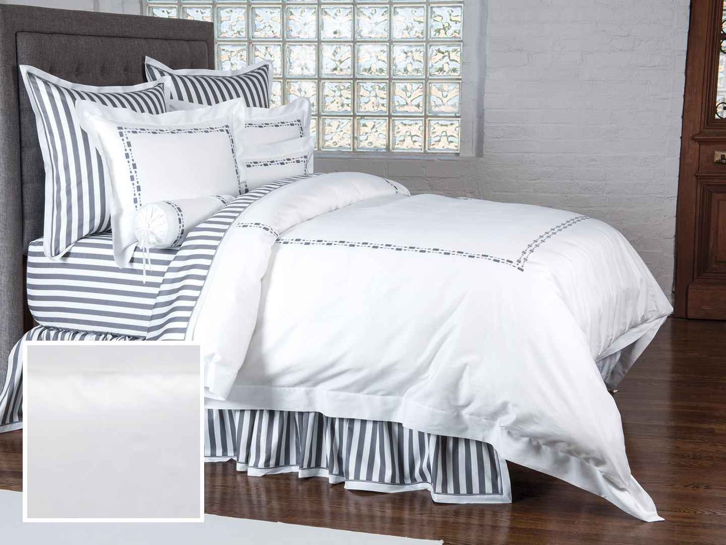 <p>Cityscape Fitted Sheets,Fitted White Sateen (Queen ) Straight from Italy this charming design blends the natural beauty of simple shapes and lines for a contemporary look that feels upscale but never uppity. The embroidery is gorgeously displayed on pure White 300 thread count Egyptian cott...more