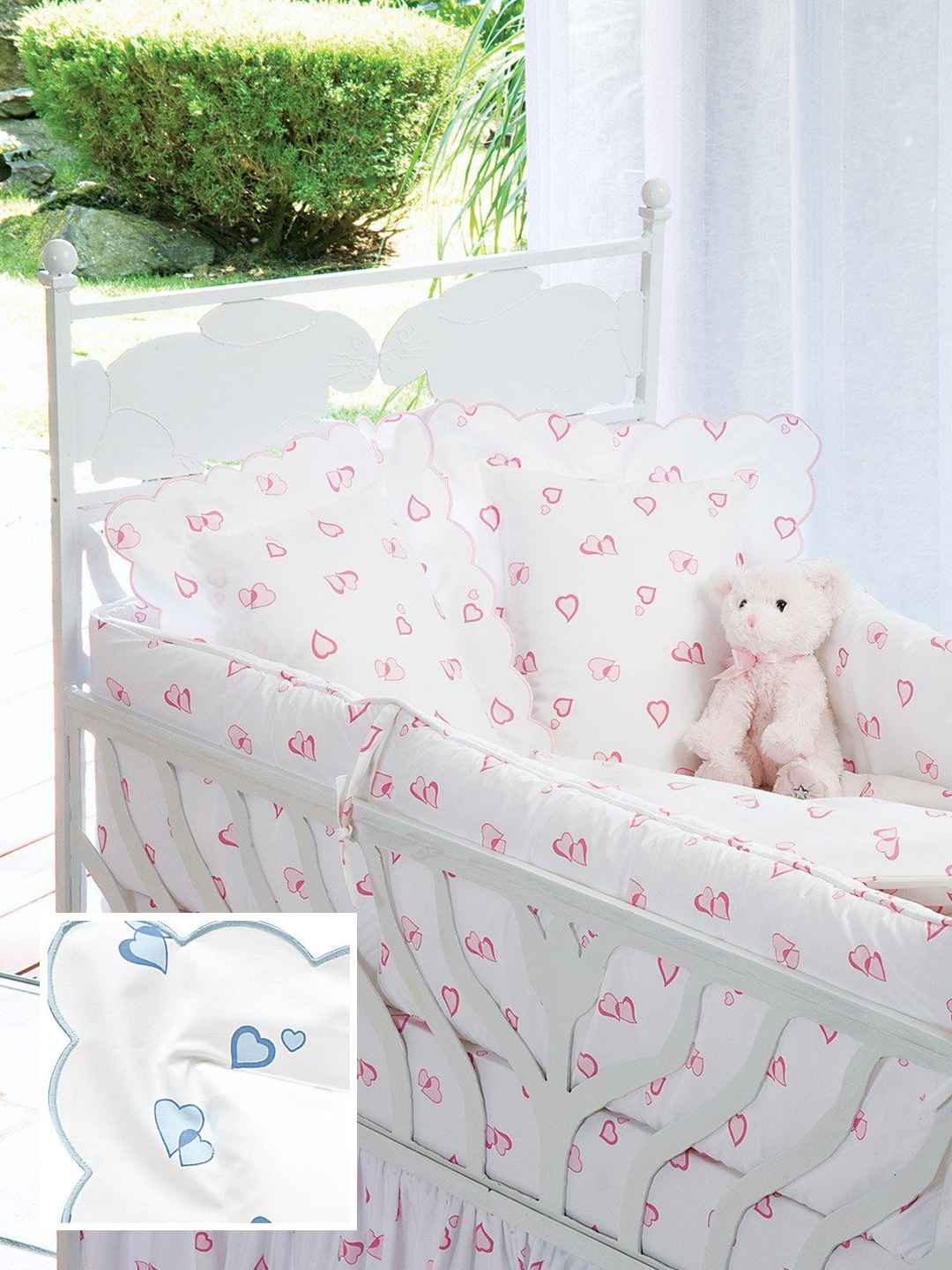 <p>Lovable 21 Baby Crib Bedding, Blue (Fitted Sheet) Wrap your little bundle of joy in a world of tender loving care. This irresistible collection is made of 100% Italian cotton and includes duvet covers, fitted crib sheets, baby shams, bumper pads and dust ruffles. Precious tiny hearts in Pin...more