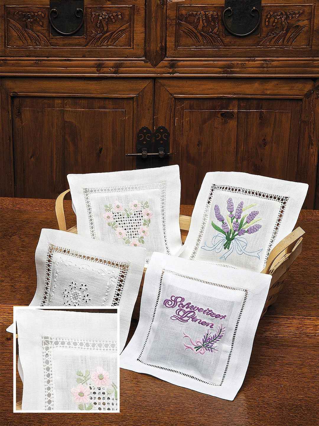 <p>Sachet Cachet Potpourri Sachet, Heart of Flowers (Set of 3) Lovely filled pockets full of potpourri for all your closets and drawers are daintily embroidered and hemstitched by hand. Made of finest Italian linen, with a soothing lavender rose scent inside, they open in back to accommodate y...more