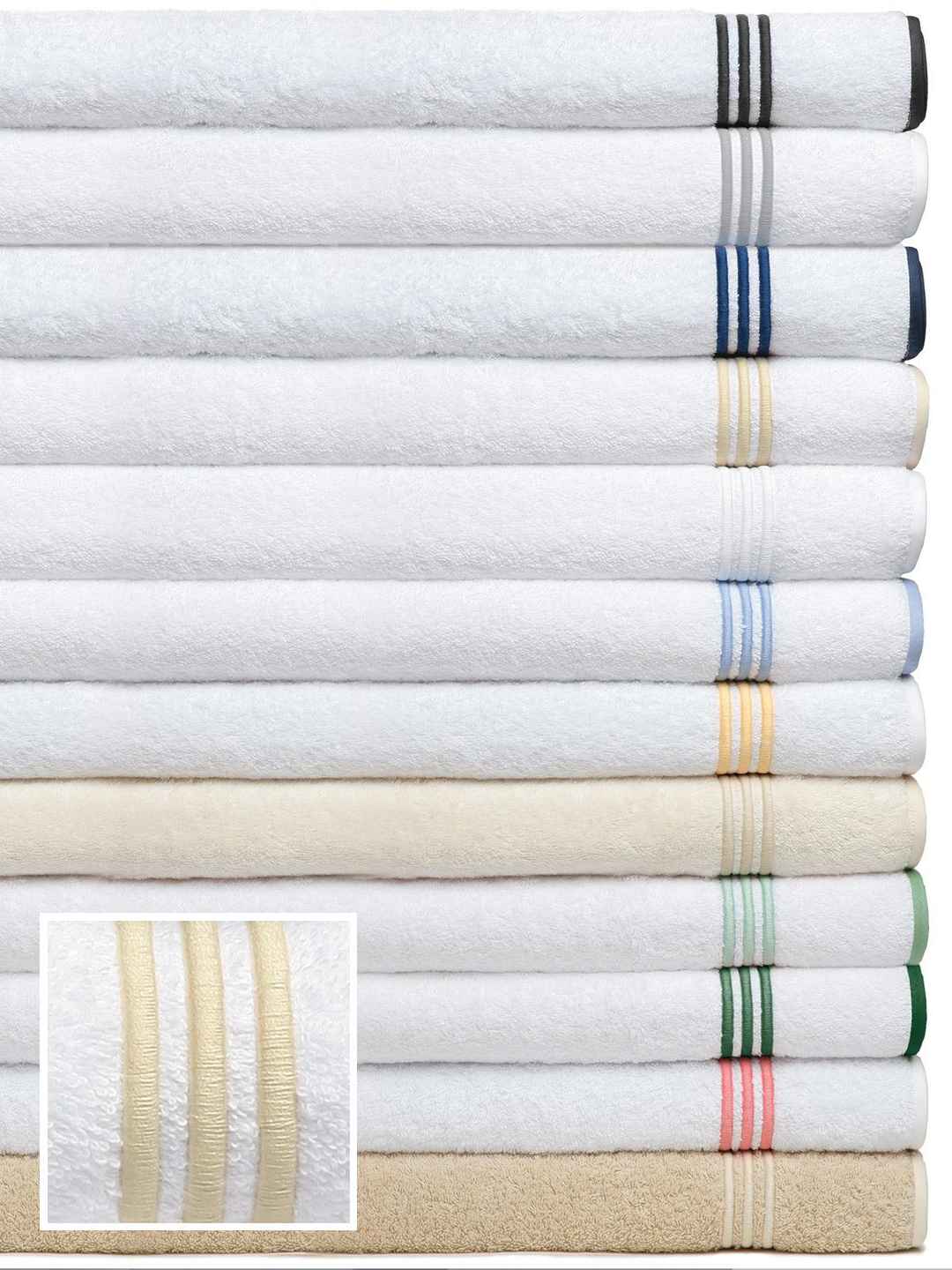<p>Hampton Court Bath Bath Set,Beige (Studio (1 Bath,1 Hand,1 Wash)) Plush, thirsty, 100% Egyptian Cotton Terry towels are oversized and wonderfully accented with a classic three line embroidery. Imported from Italy in Black, Gray, Navy, Beige, White, Blue, Yellow, Beige on Ivory, Green, Hunte...more