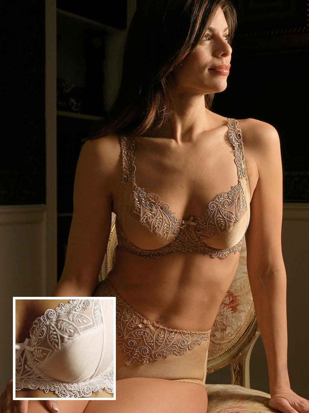 <p>Intrigue Hi-Cut Panty, White (Small) Totally romantic and ultra feminine, this exquisitely embroidered soft-cup bra provides truly comfortable underwire support, with reinforced side panels. Elegant embroidered straps adjust in back. Designed in Holland, superbly made of polyester/spandex. ...more