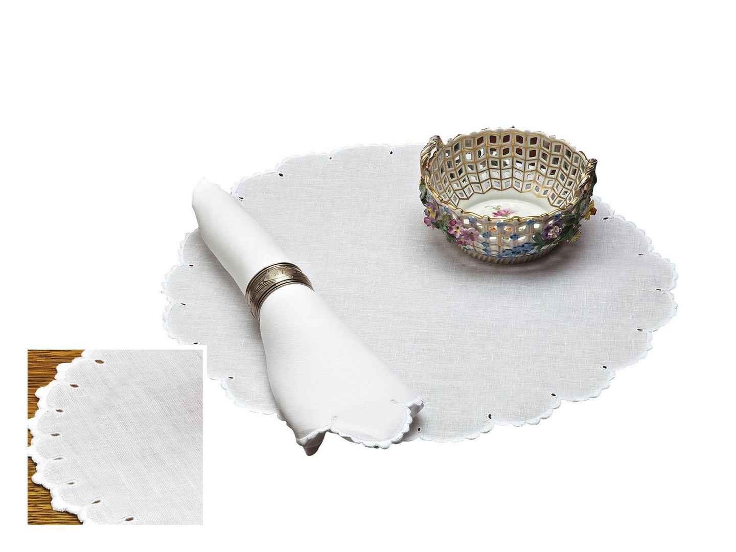 <p>Tre Monte Doilies (Set of 3), White: Round (8" Round) For gracious entertaining, fine White linen woven in Italy serves up the most necessary accessories with hand-worked triple scallops and eyelet detail. Choose doilies to fit your every need, cocktail napkins for happy hour and party...more