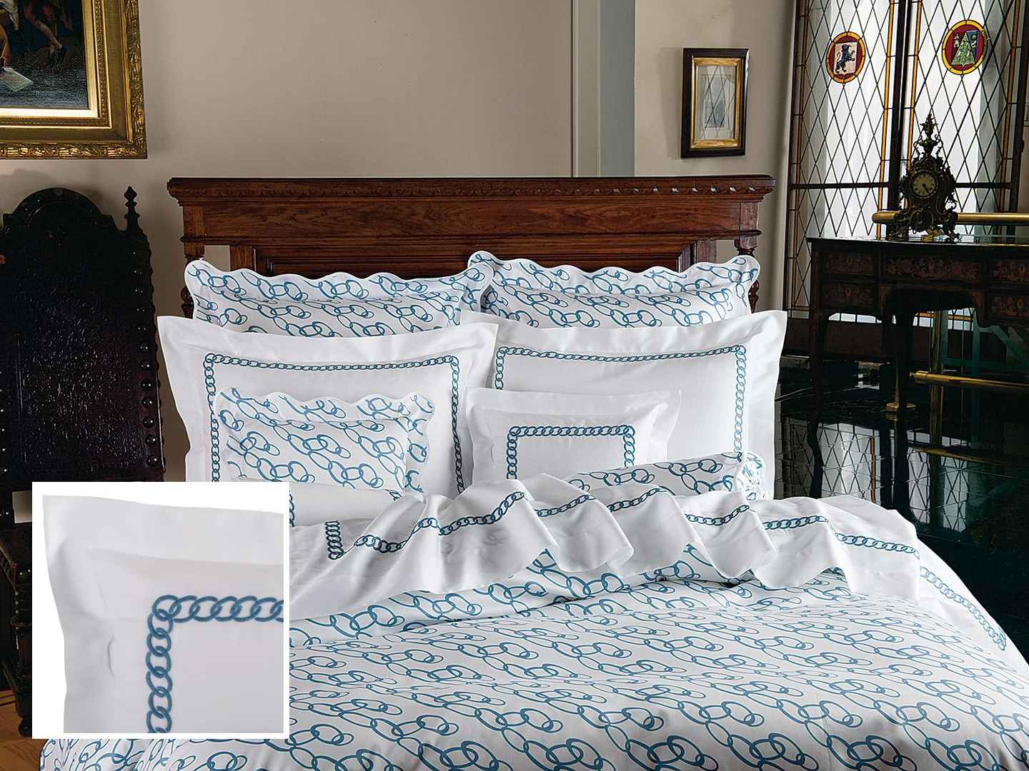 <p>Viareggio Duvet Covers Blue (Twin,each) Like a jewel set in a crown, eternal links of shimmering Blue embroidery are enhanced by the opulence of smooth-as-silk, 300 thread count, 100% Egyptian cotton sateen in purest White. Expertly made in Italy, the flanged edges have mitered corners that...more