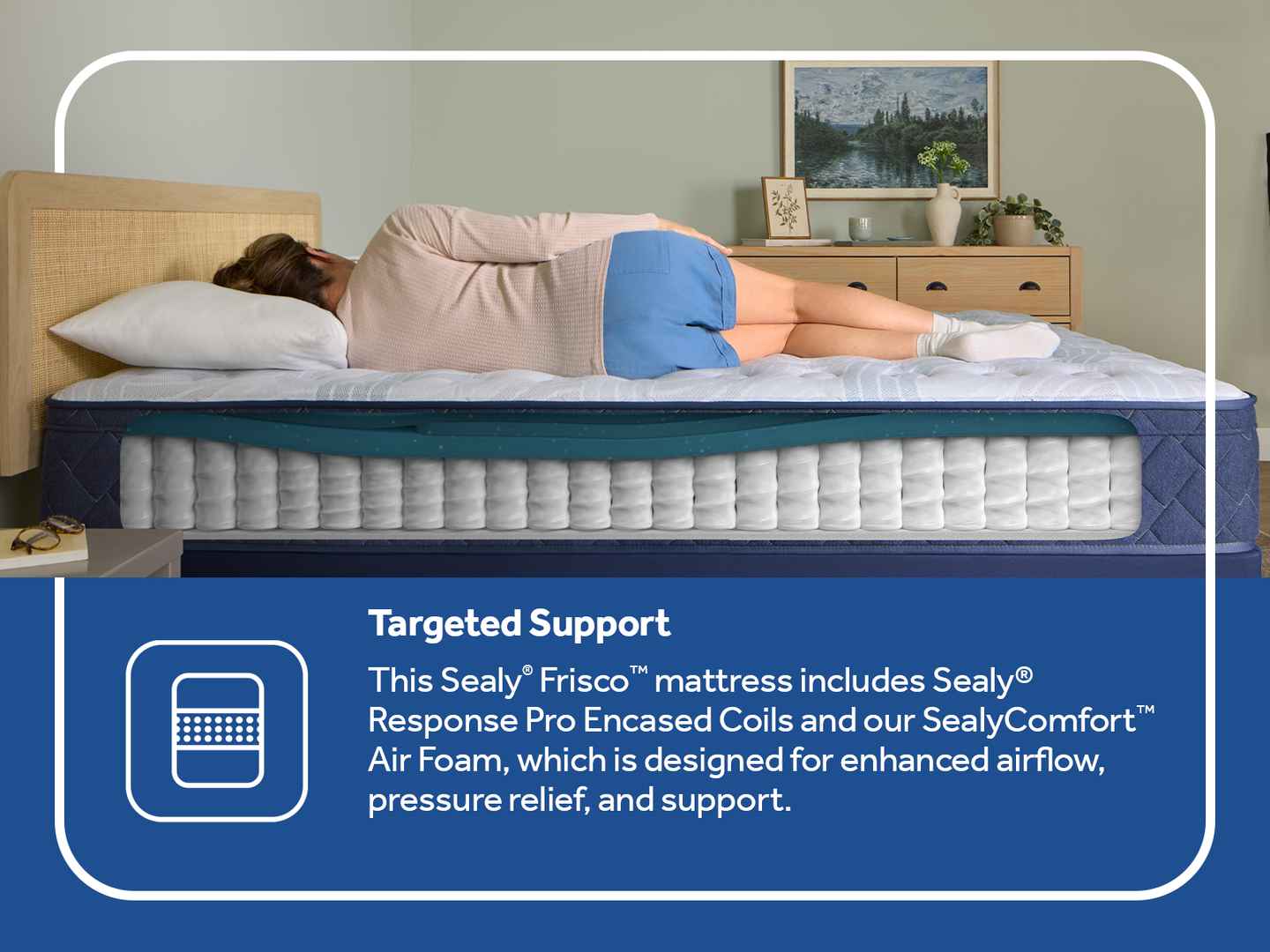 Ready to indulge in deeper comfort? The Sealy Frisco mattress provides a new level of support and pressure relief to give you the sleep upgrade you're after. You'll rest undisturbed all night long with Sealy Pro Encased Coils designed to isolate motion between you and your partner. On top of the mat...more
