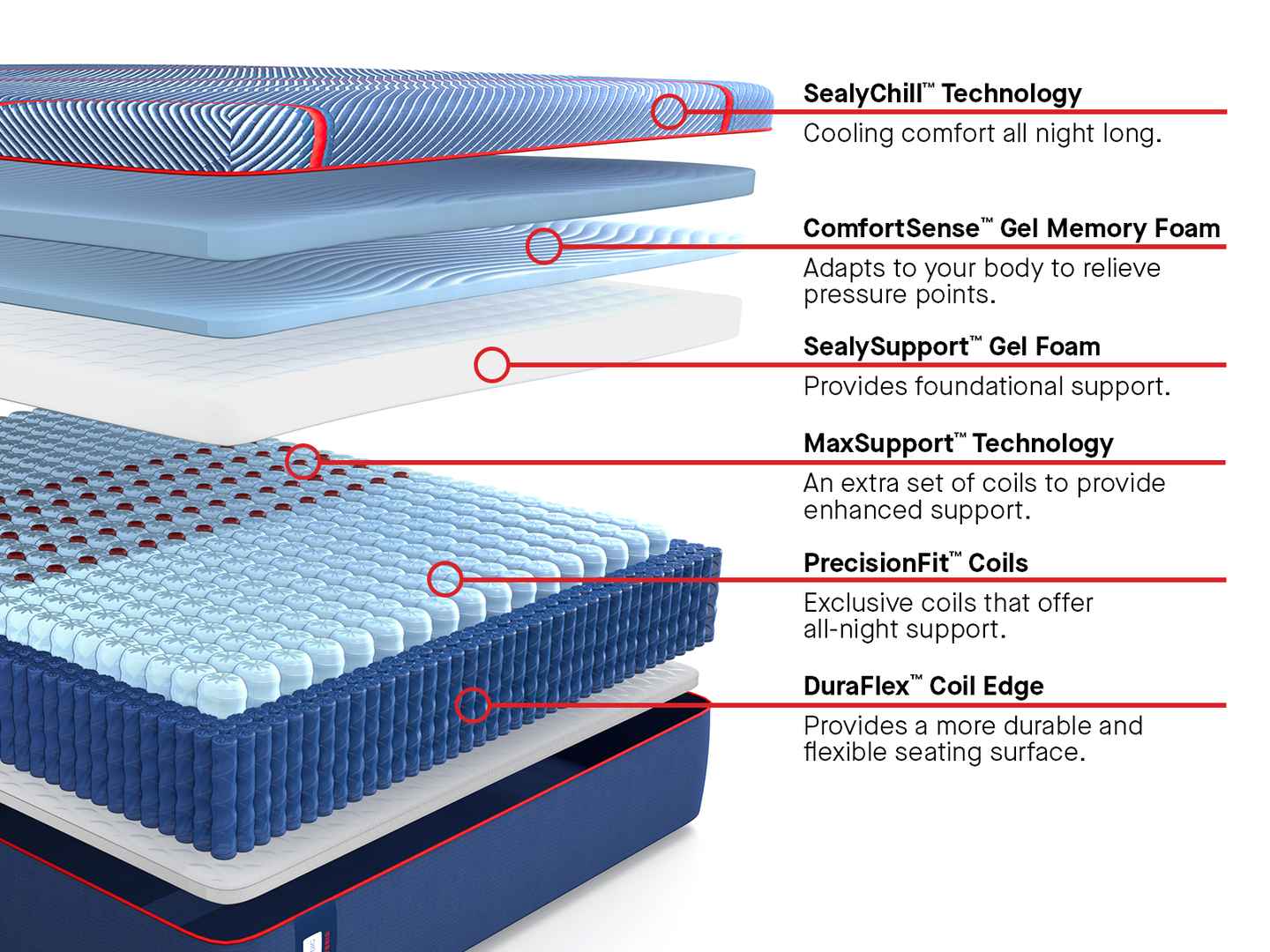 Say goodnight to nagging Bed Aches with the targeted support of the Sealy Posturepedic Hybrid Brenham II Firm Mattress. The Posturepedic Pro Support System features exclusive PrecisionFit Coils strategically arranged and enhanced with MaxSupport Technology for robust head to toe support where you ne...more