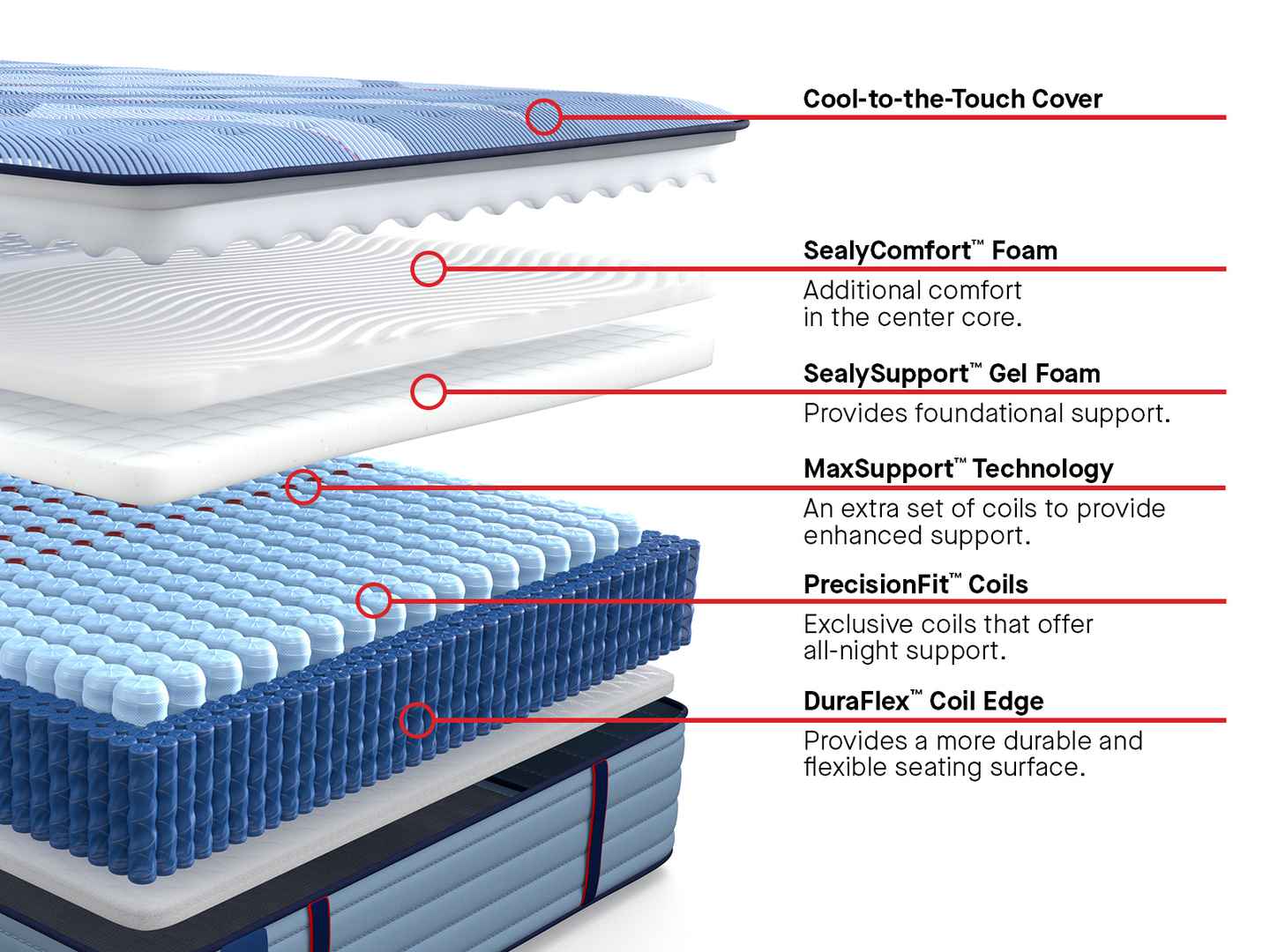 Experience targeted support and lasting comfort with the Sealy Posturepedic Pro Lacey II Firm Mattress. The advanced Posturepedic Pro Support System features exclusive PrecisionFit Coils with MaxSupport Technology arranged head to toe to maintain body alignment and reduce Bed Aches. The DuraFlex Coi...more