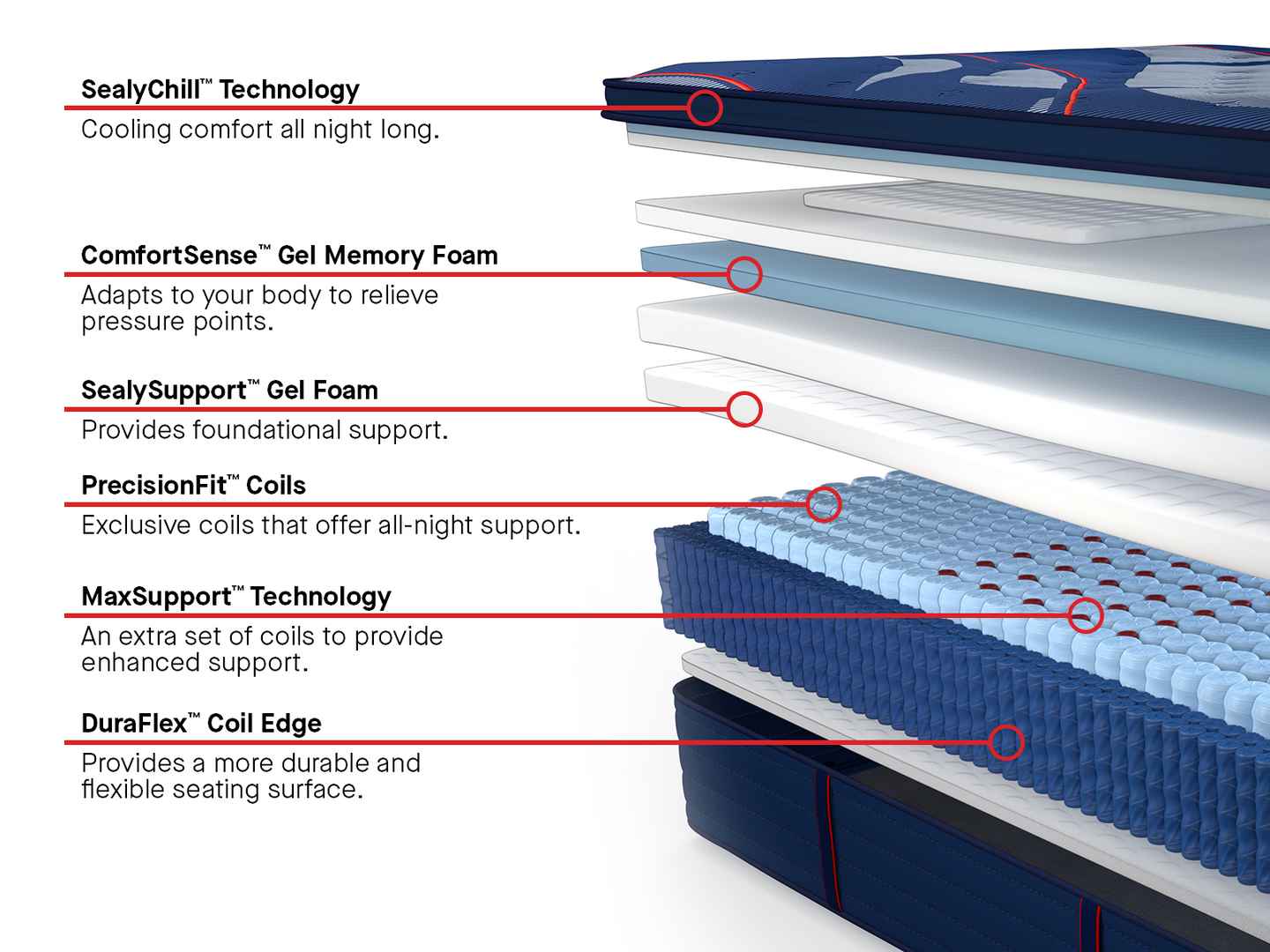 Discover the perfect balance of targeted support and exceptional comfort with the Sealy Posturepedic Brenham II Firm Euro Pillow Top mattress. The Posturepedic Pro Support System features exclusive PrecisionFit Coils enhanced by MaxSupport Technology and arranged head to foot for targeted support to...more
