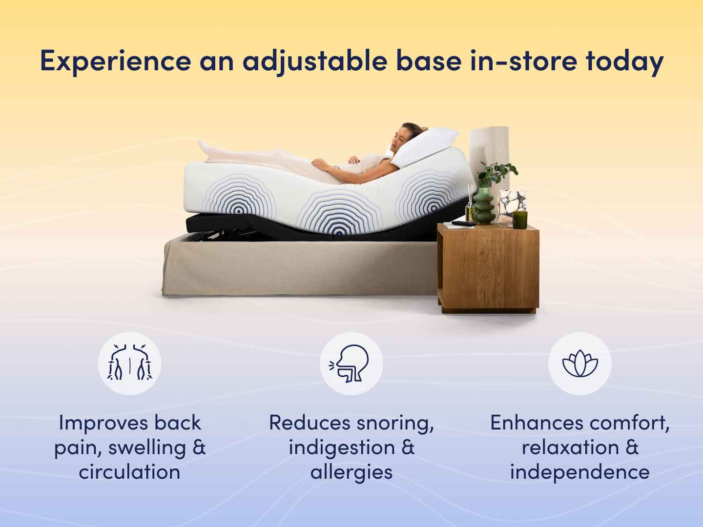 The latest version of our classic power base EASE lets you take complete control of your comfort with nearly unlimited adjustable ergonomic positions for sleeping sitting reading working or watching TV. The wireless remote includes one touch preset buttons and backlit soft touch function keys so you...more