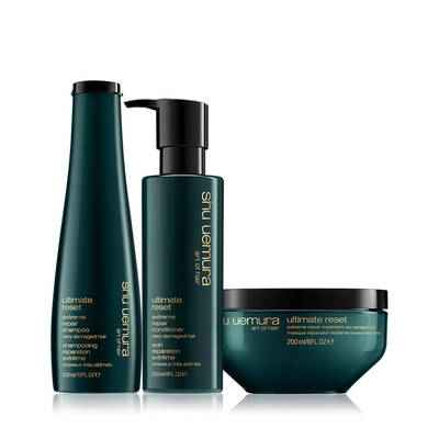 hair set for very damaged hair frequent bleaching coloring or chemical treatments that provides intense care suppleness and strength. luxury hair care set includes: ultimate reset shampoo 300ml this shampoo can be used to repair and restore very damaged hair that has undergone frequent bleaching col...more