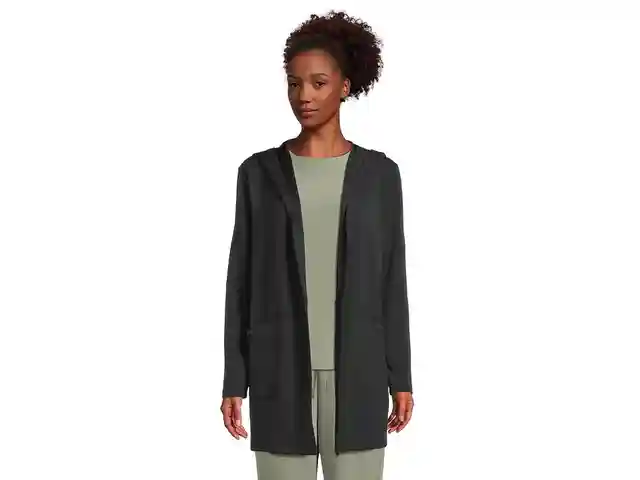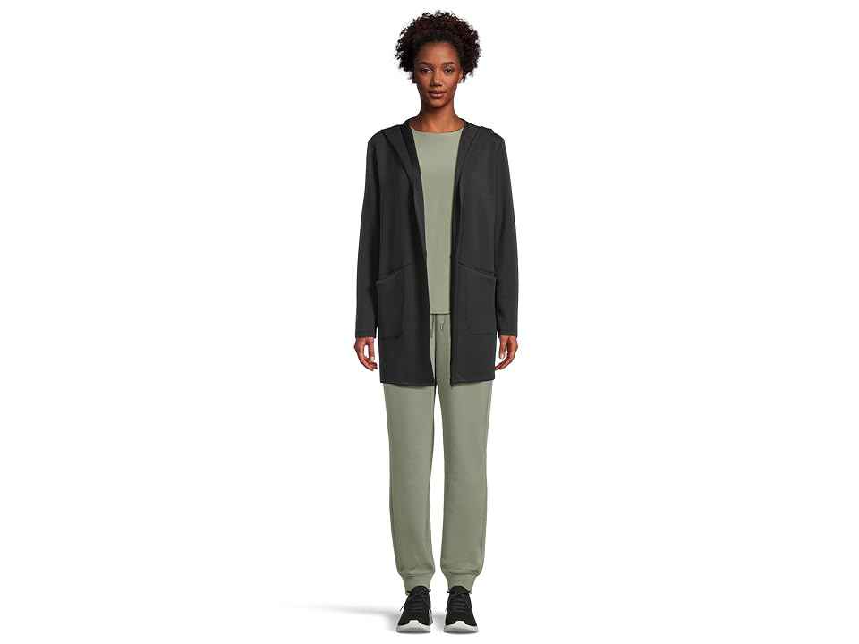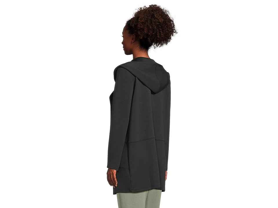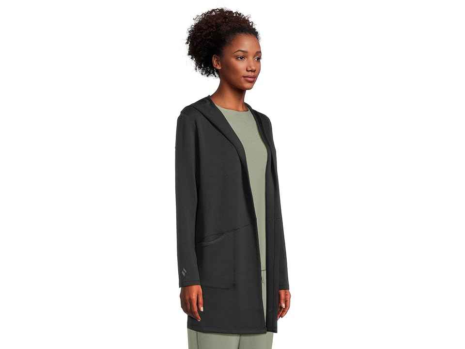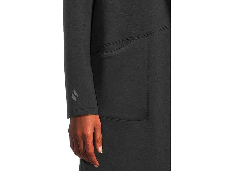 SKECHERS Elevate Luxe Hoodigan - Women's Sweatshirt : Bold Black : Envelope yourself in pure, silky comfort wearing Skechers SKECHLUXE ELEVATE Restful Hoodigan. This soft, thigh-length lounge piece is made from our premium SKECHWEAVE ELEVATE fabric and features a large hood with two deep open hand p...more