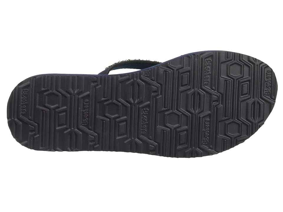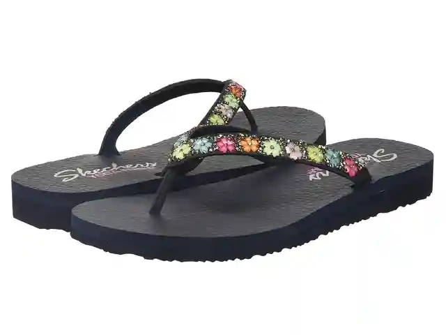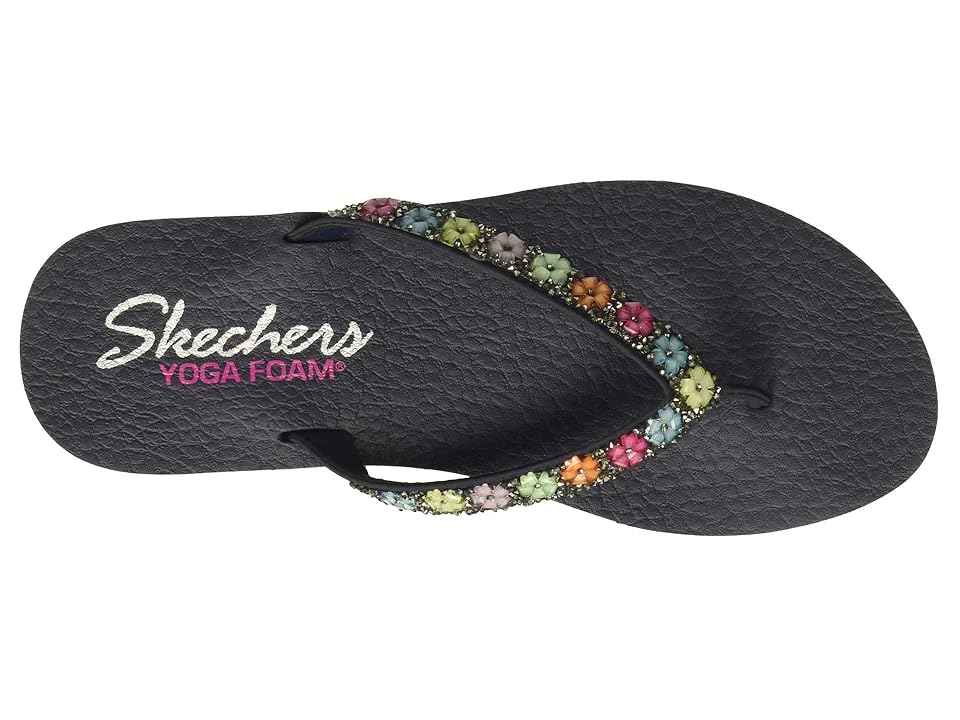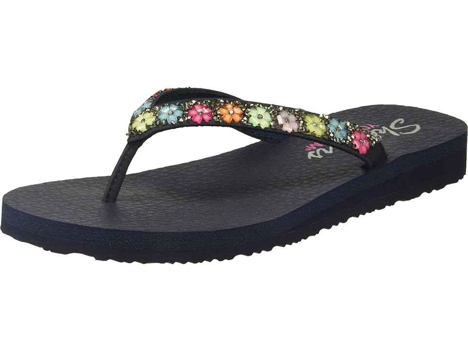 The SKECHERS Meditation - Daisy Delight sandal lends a dose of glam to your summery-chic look with mixed jewel embellishments along the straps, a smooth synthetic upper, and thong-style silhouette. Slip-on design. Open-toe with center thong post. Breathable fabric strap lining. YOGA FOAM cushioned c...more