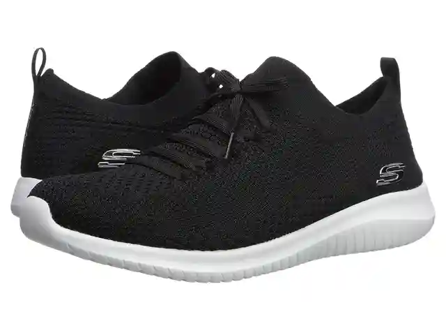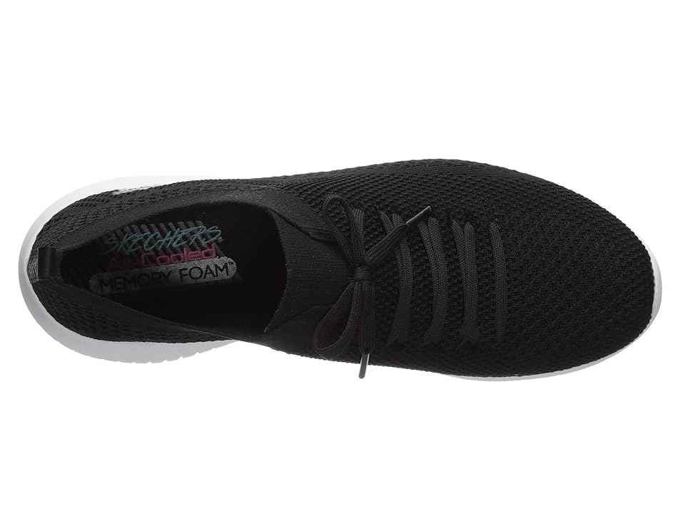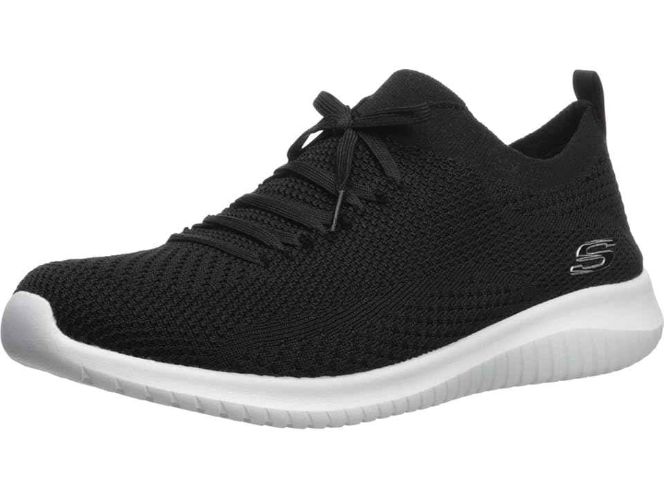 The SKECHERS Ultra Flex - Statements sneaker offers flexible comfort with a Skech Knit Mesh fabric upper, knit-in texture detailing, a stretch collar, interwoven ventilating panels, and premium cushioning. Slip-on entry with a fixed laced front panel. Round toe with reinforcement at the bumper. Rear...more