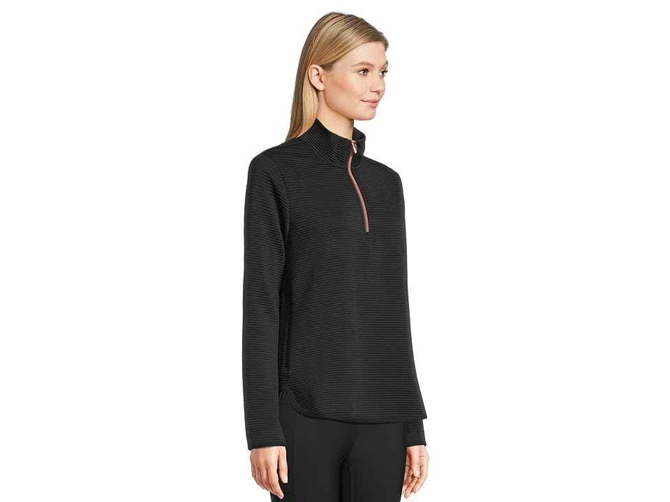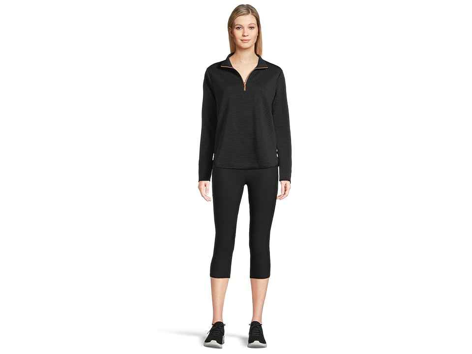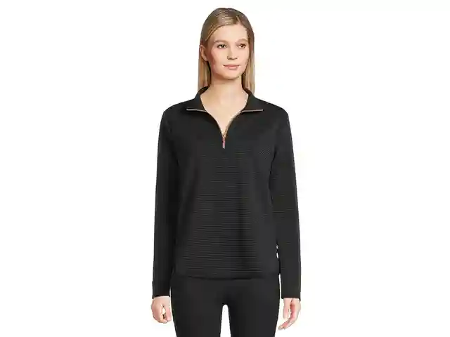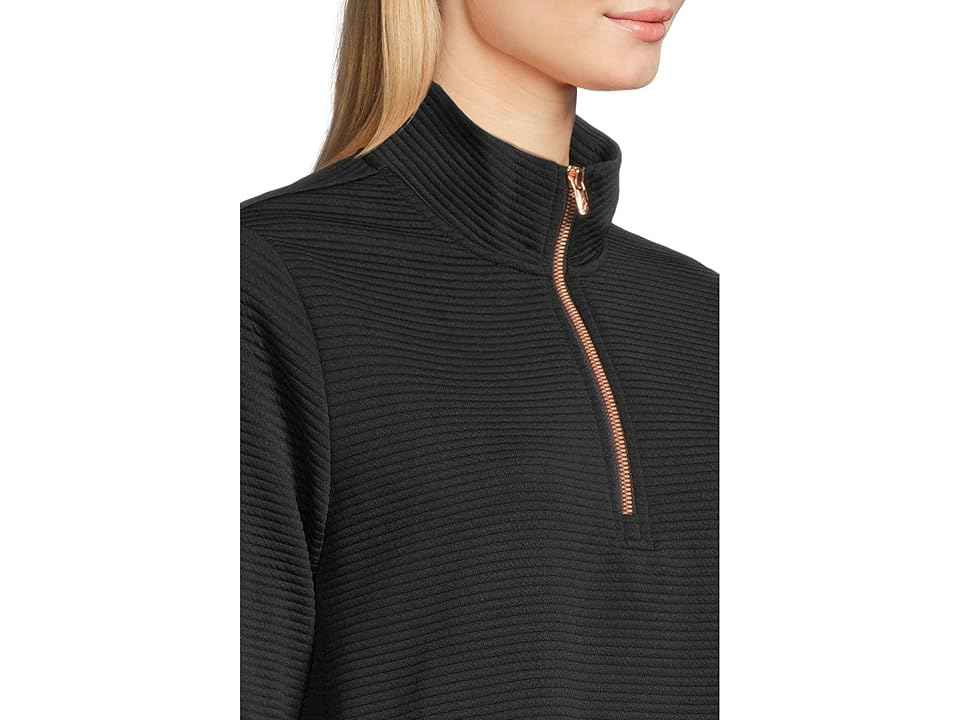 SKECHERS Soft Knit Ottoman 1/4 Zip - Women's Sweatshirt : Bold Black : The primary materials that compose this product contain a minimum of 20 percent recycled content. ; Stay warm and comfortable during your outdoor workouts wearing the Skechers Soft Knit Ottoman 1/4 Zip. This earth-friendly pullov...more