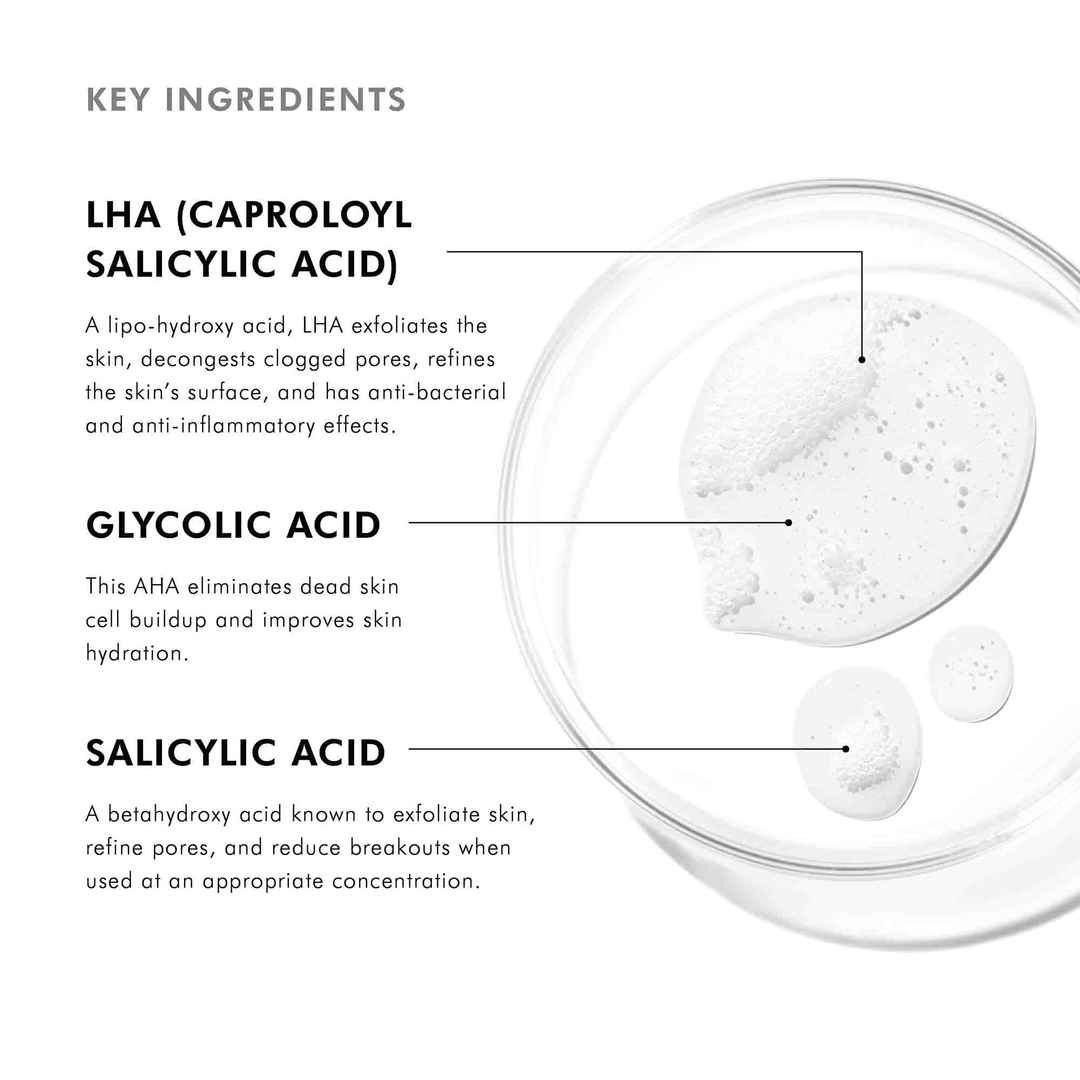 Exfoliating gel face cleanser for blemishes decongests pores, smooths skin texture, and brightens skin. LHA Cleansing Gel is a targeted exfoliating LHA/AHA/BHA cleanser featuring a conditioning surfactant and a 12% concentration of key ingredients combining lipo-hydroxy acid, glycolic acid, salicyli...more