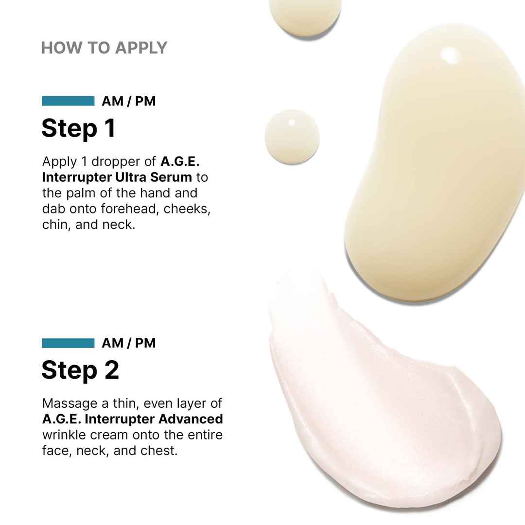 This anti-aging bundle features best sellers A.G.E. Interrupter Ultra Serum and A.G.E. Interrupter Advanced. A.G.E. Interrupter Ultra Serum, is a double-patented skin firming serum for visible lift. This serum tightens 4 key areas including the forehead, cheeks, jaw line, and neck, for a more visibl...more
