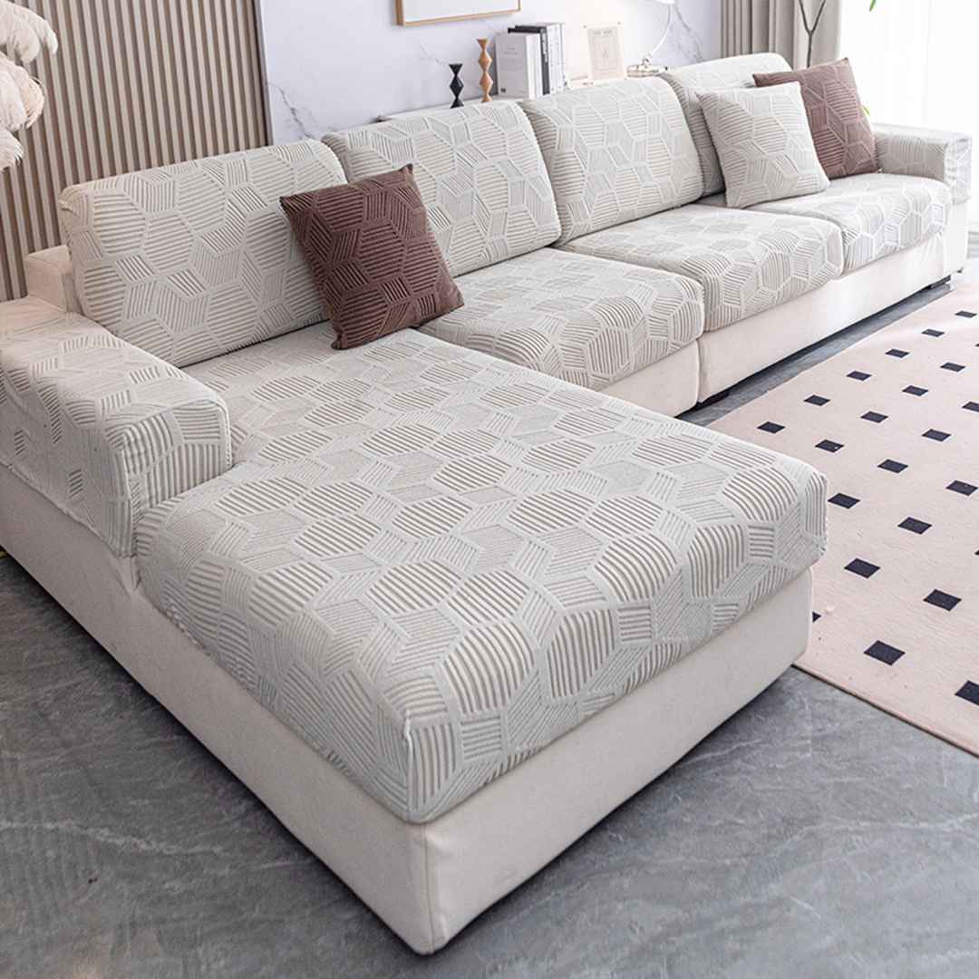 Protect your sofa in style with our Water-Resistant Honeycomb Jacquard Stretch Cover. Designed with pet owners in mind, this full-cover slipcover features a modern honeycomb texture, water-repellent finish, and stretch-fit design for effortless protection and comfort—all while adding a refined touch...more