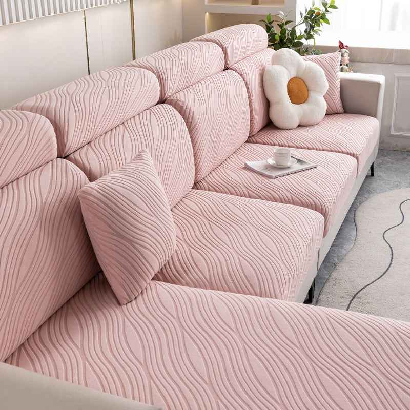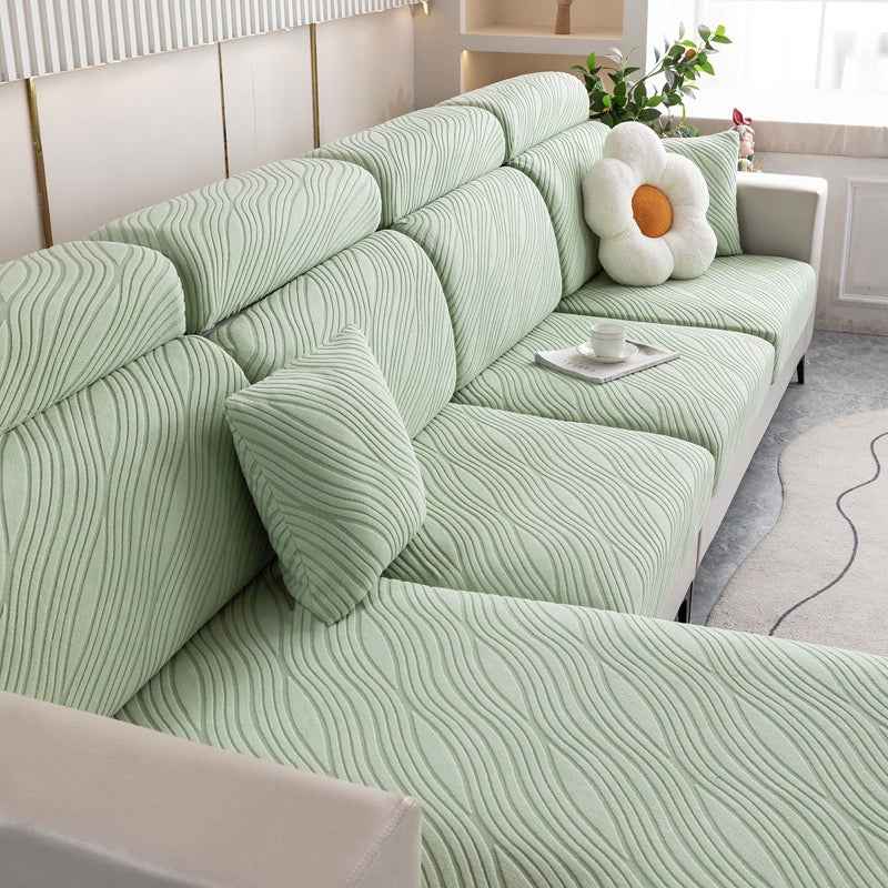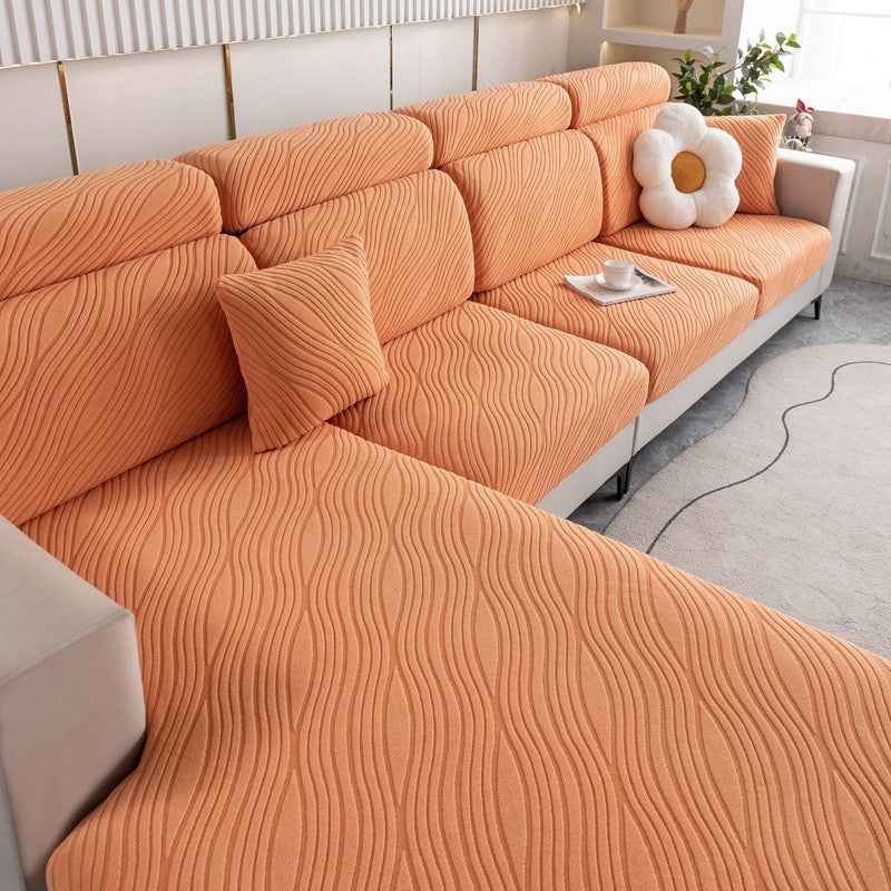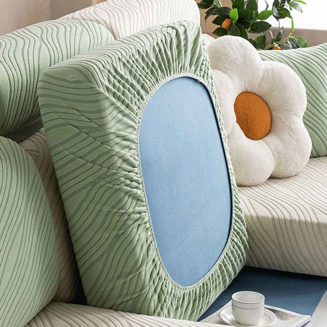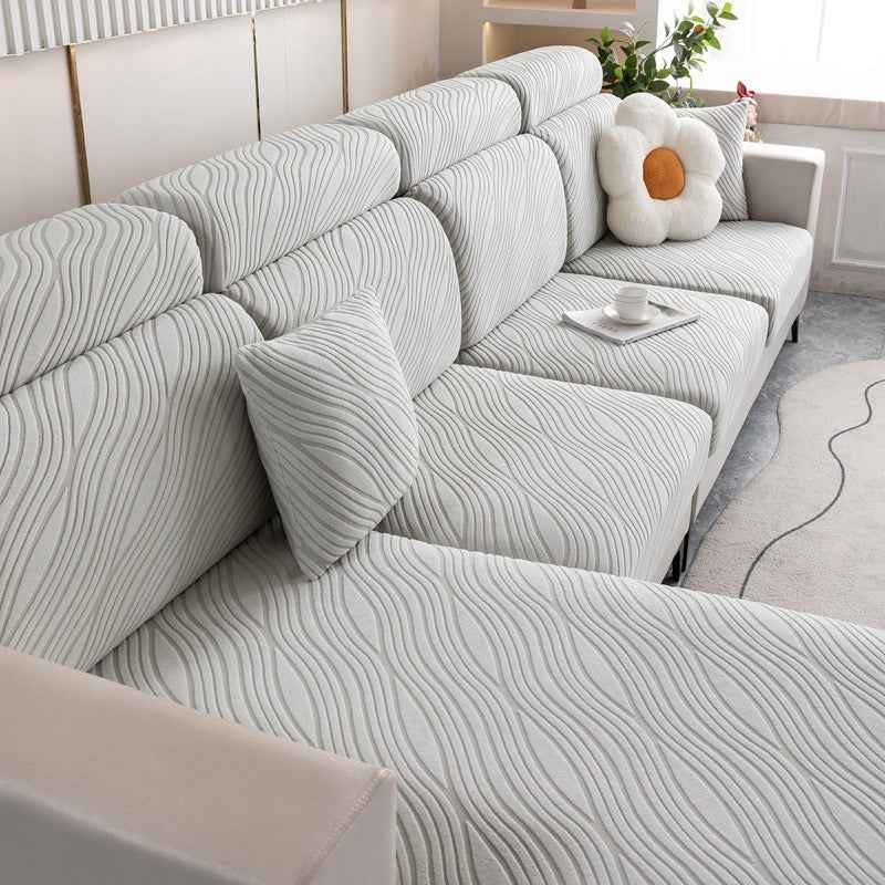 Infuse your living space with tranquil energy and modern sophistication using the WaveLuxe Ripple Stretch Sofa Cover. Inspired by the gentle rhythm of flowing water, the wave-textured jacquard pattern adds movement and depth, while the ultra-soft fabric wraps your sofa in cozy comfort. Whether you’r...more