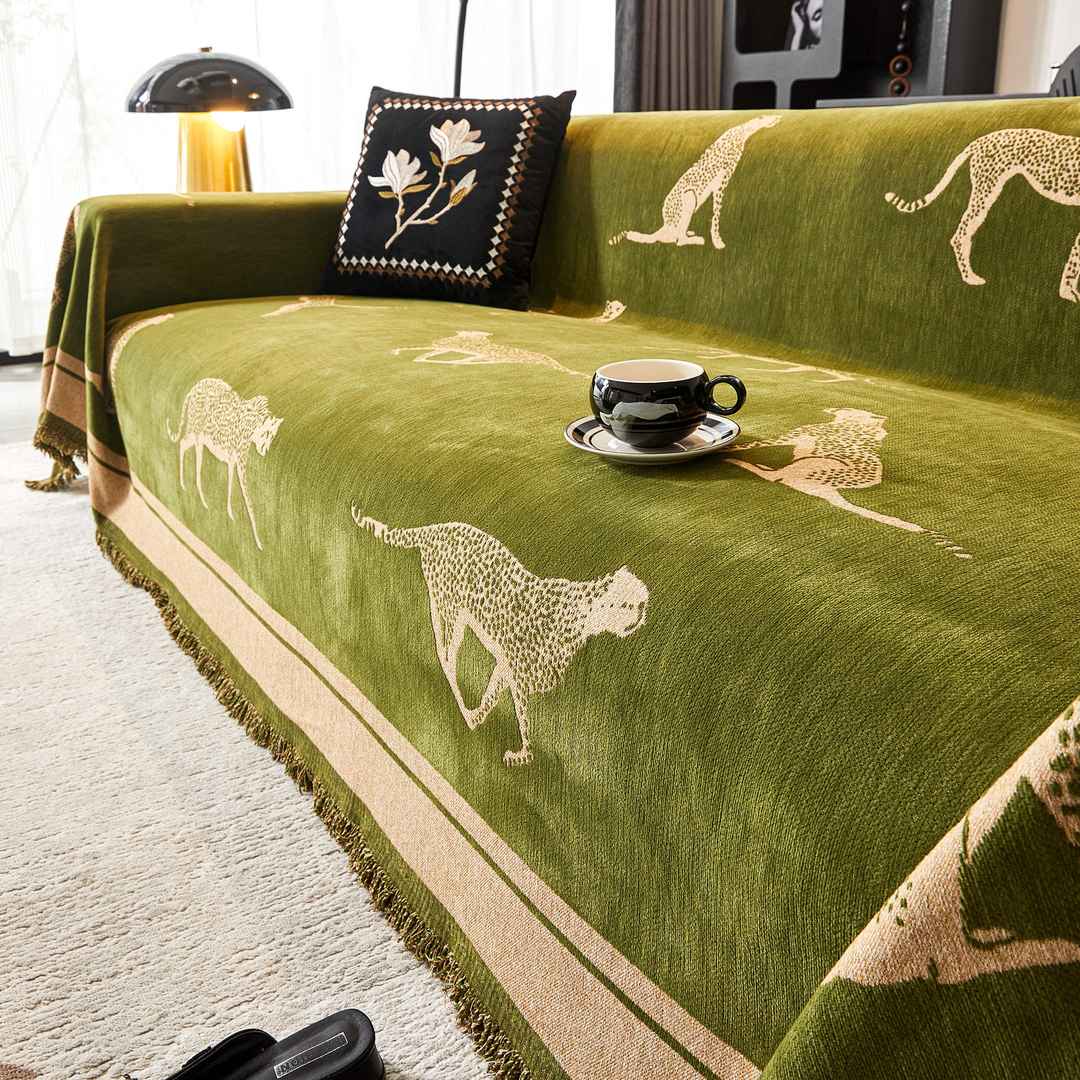 Bring a touch of the wild into your home with our Safari-Inspired Cheetah Sofa/Couch Cover. Perfect for animal lovers and those with a flair for stylish decor, this cover showcases elegant cheetah motifs against a lush green background, adding both charm and resilience to your living space. Designed...more