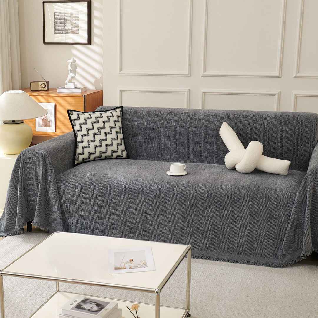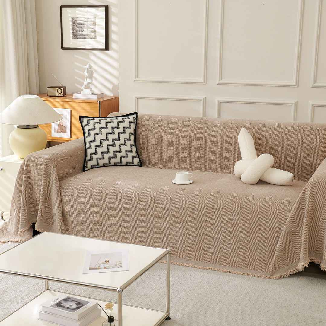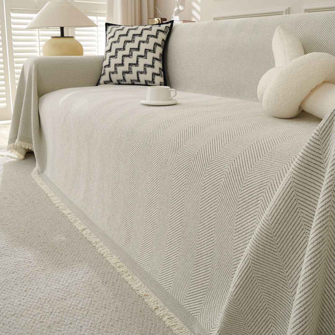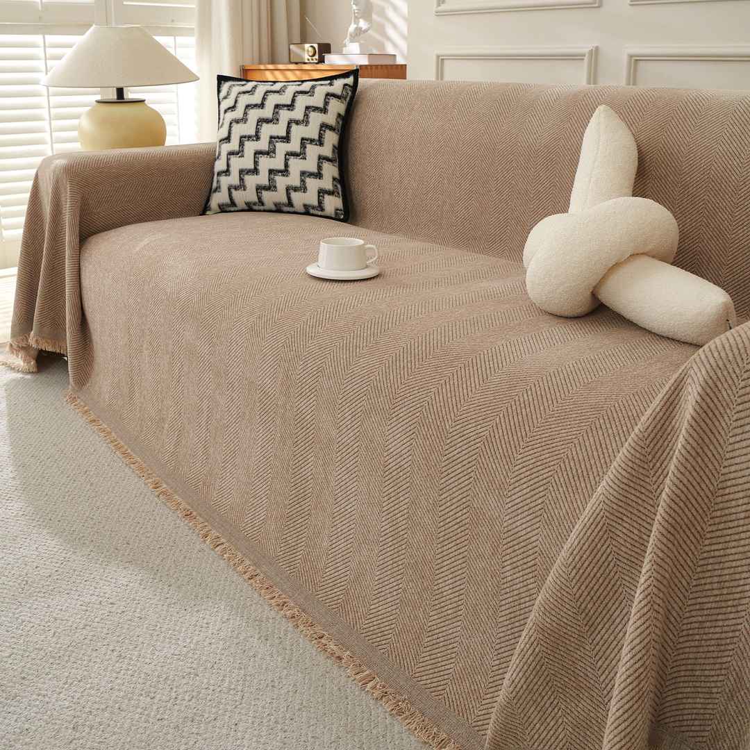 Soft Breathable Herringbone Plush Pet-Friendly Multi-Purpose Minimalist Sofa Cover – Woven Throw Couch Protector