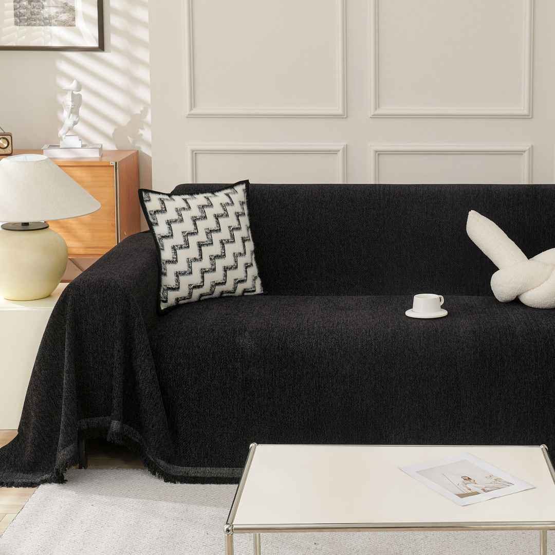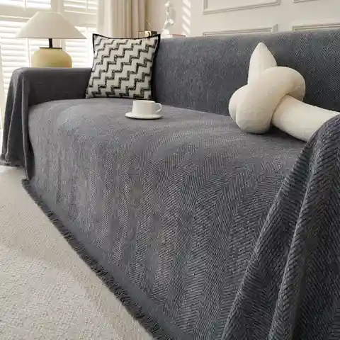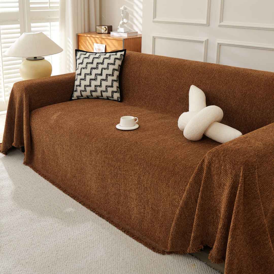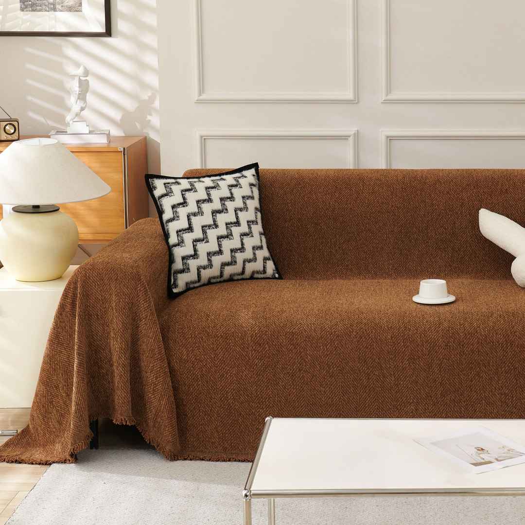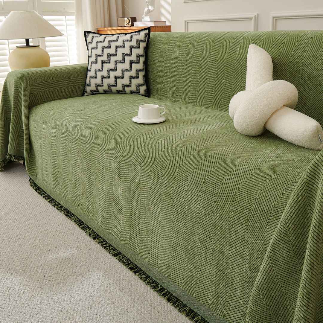 Soft Breathable Herringbone Plush Pet-Friendly Multi-Purpose Minimalist Sofa Cover – Woven Throw Couch Protector