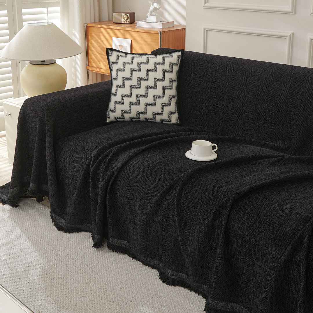 Home SLASHOP Soft Breathable Herringbone Plush Pet-Friendly Multi-Purpose Minimalist Sofa Cover – Woven Throw Couch Protector