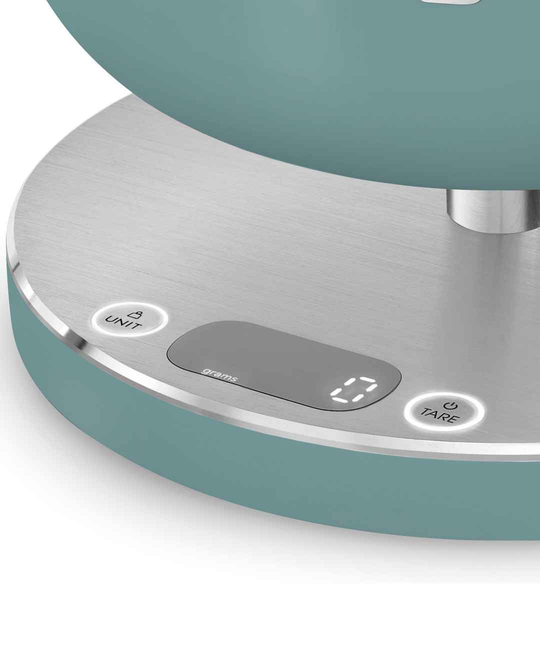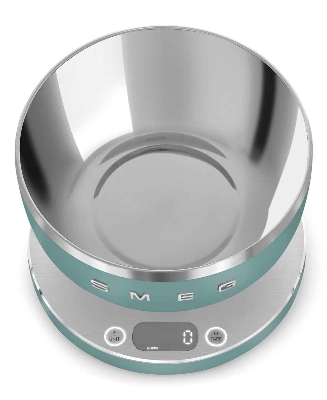 Featuring a removable stainless steel bowl, this contemporary kitchen scale from Smeg has an Led display and automatic standby. Its compact, lightweight design with Usb charging allows for easy portability.